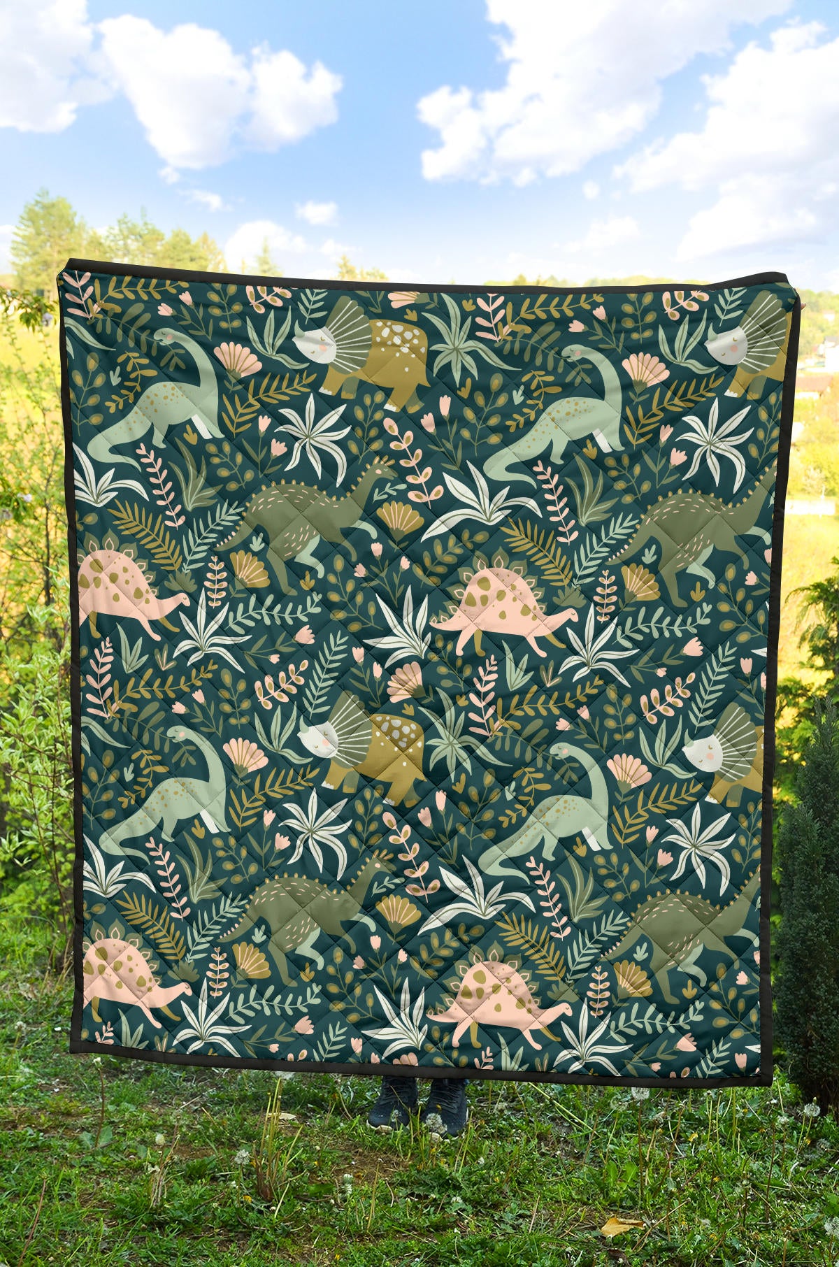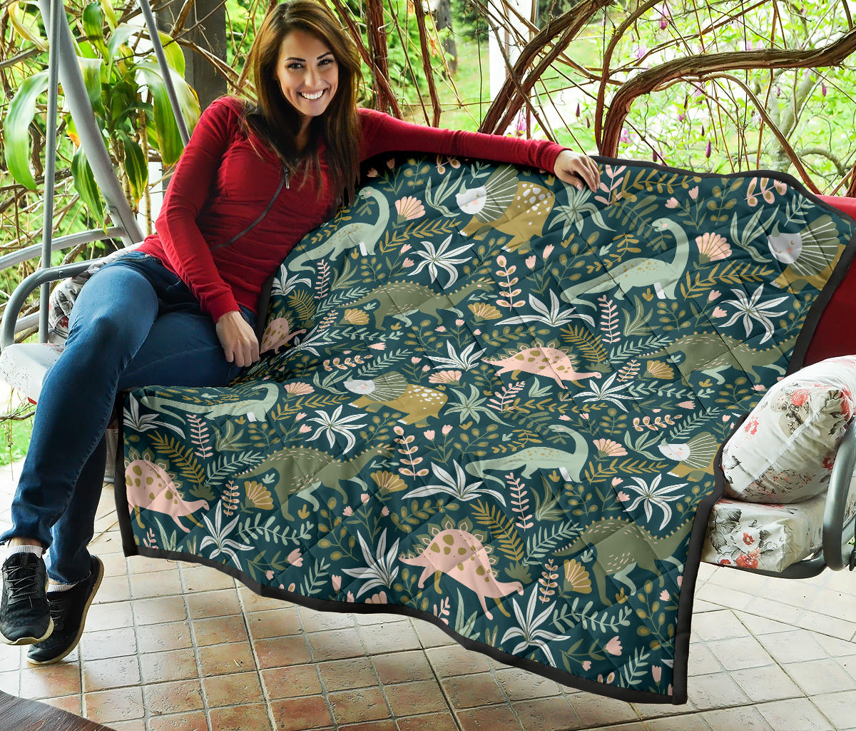 Dinosaurs Tropical Leaves Flower Pattern Premium Quilt is a uniqued design and limited item. It made to order, hand printed, and sewn with love in our factory.