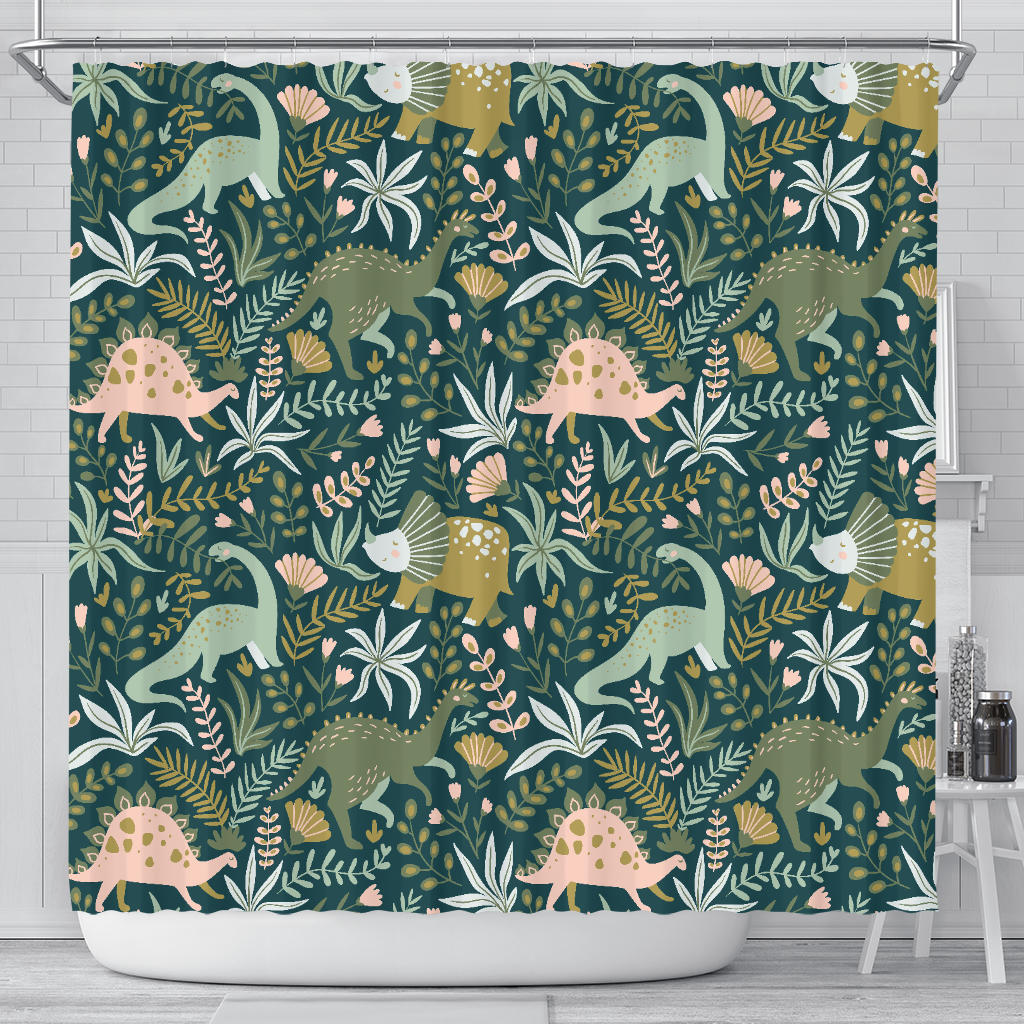 Dinosaurs Tropical Leaves Flower Pattern Shower Curtain Fulfilled In US