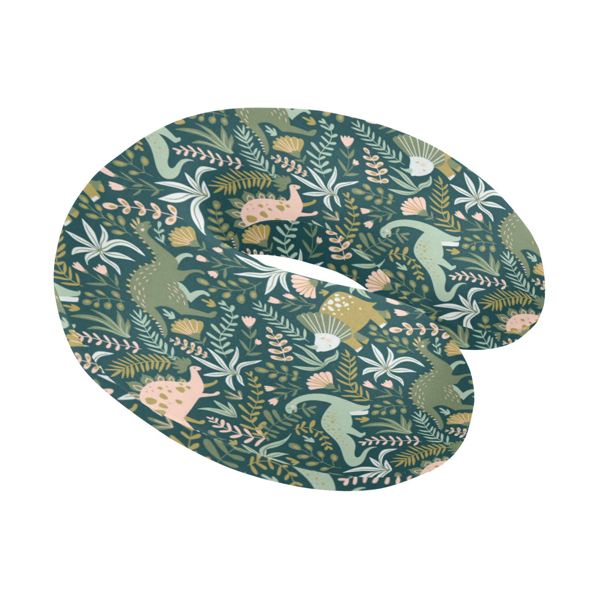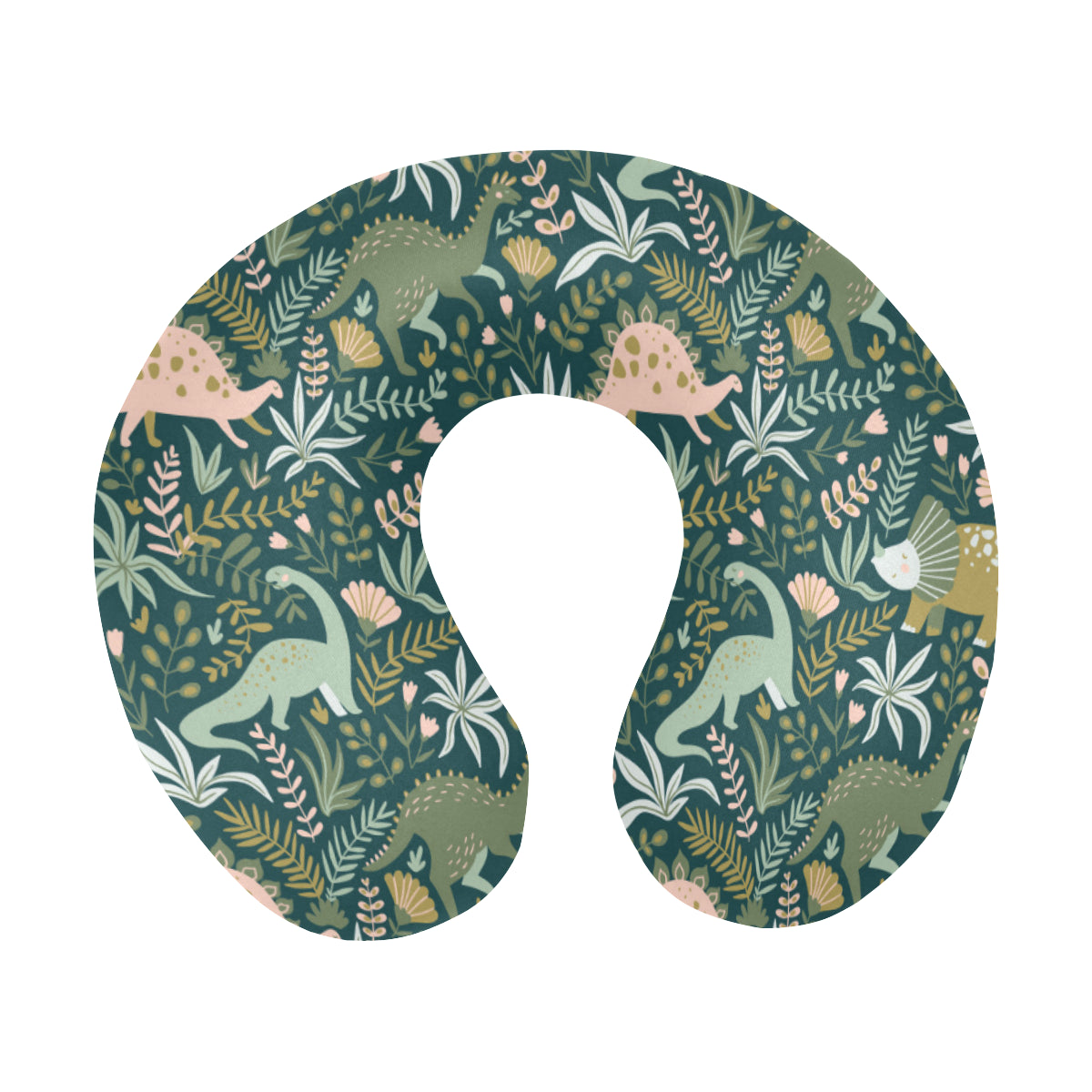 dinosaurs tropical leaves flower pattern U-Shaped Travel Neck Pillow