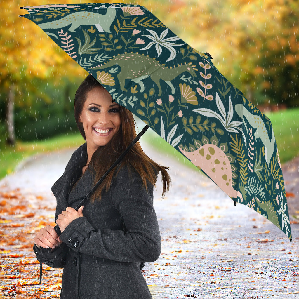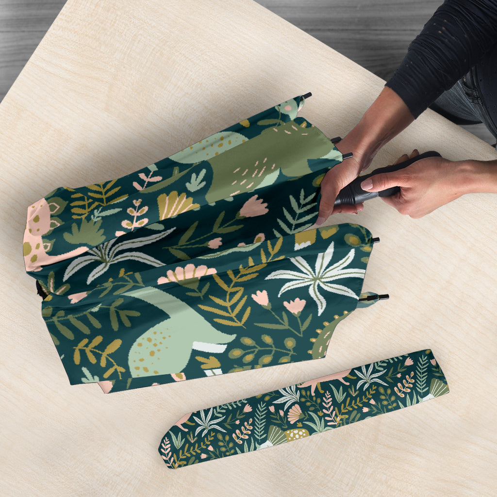 Dinosaurs Tropical Leaves Flower Pattern Umbrella