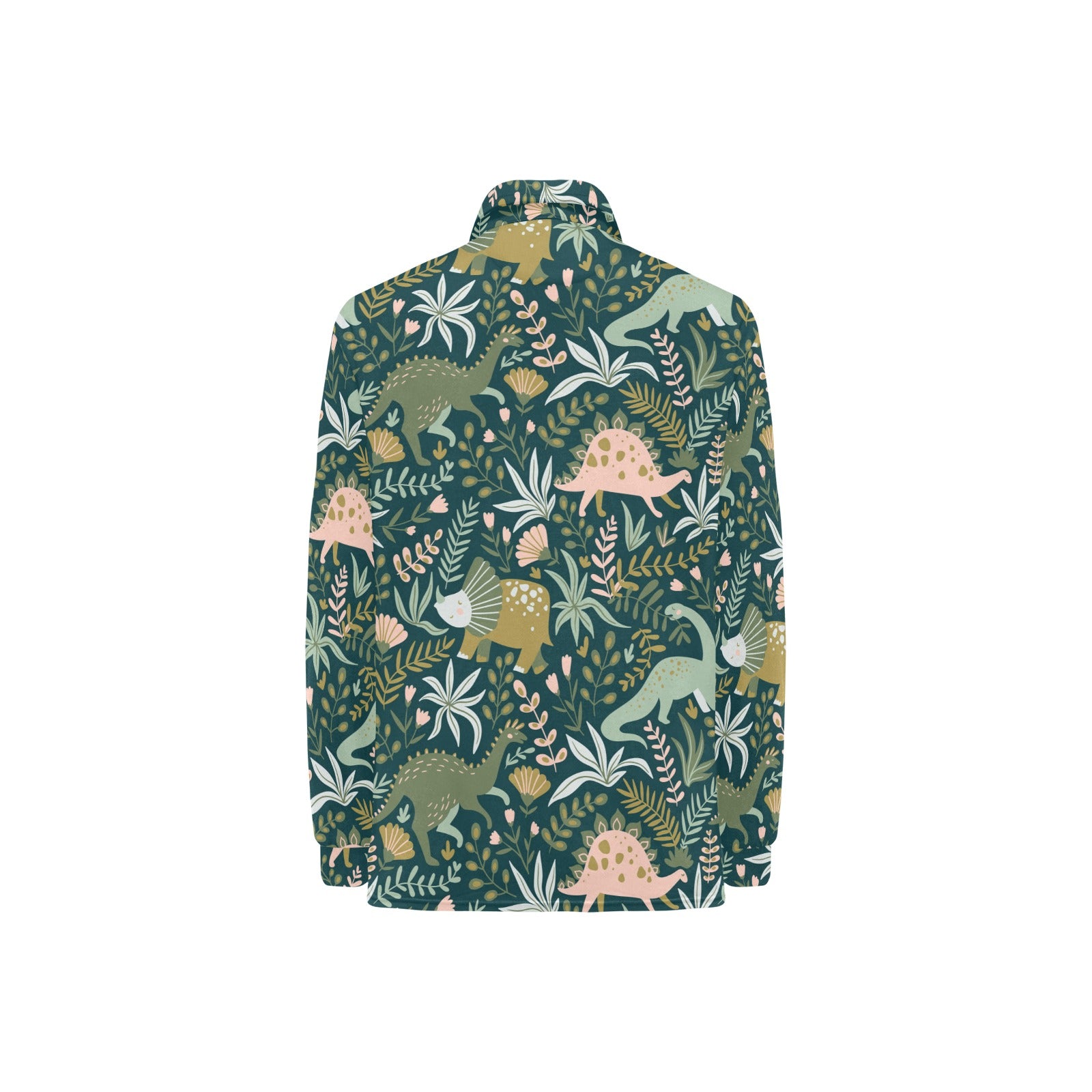 dinosaurs tropical leaves flower pattern Women's Long Sleeve Polo Shirt