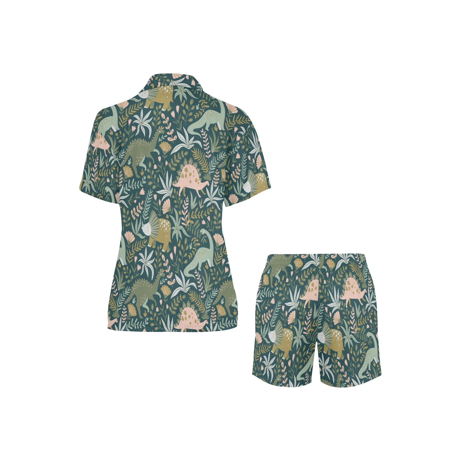dinosaurs tropical leaves flower pattern Women's V-Neck Short Pajama Set