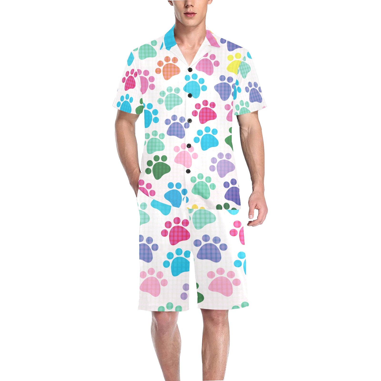 Dog Paws Pattern Print Design 01 Men's V-Neck Short Pajama Set