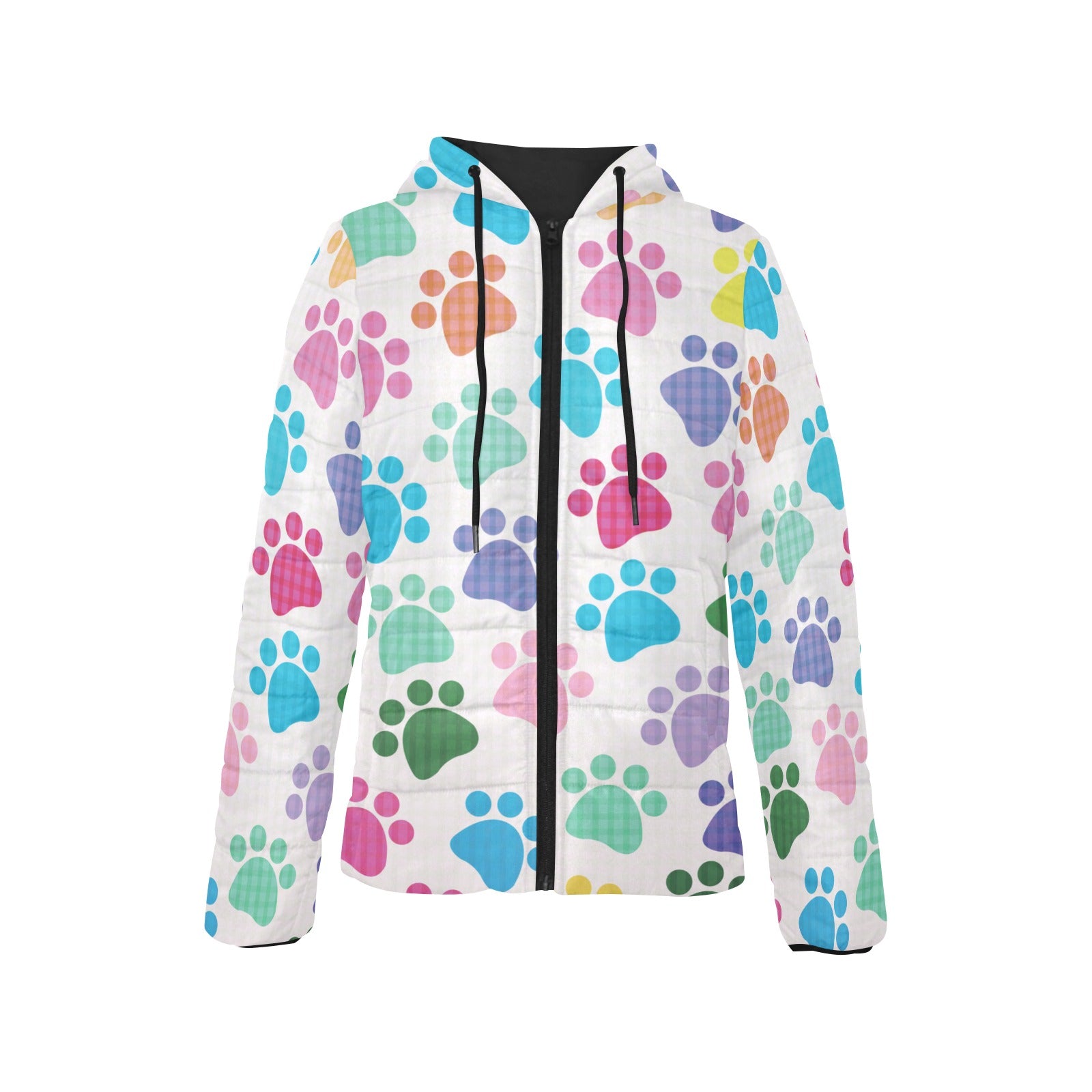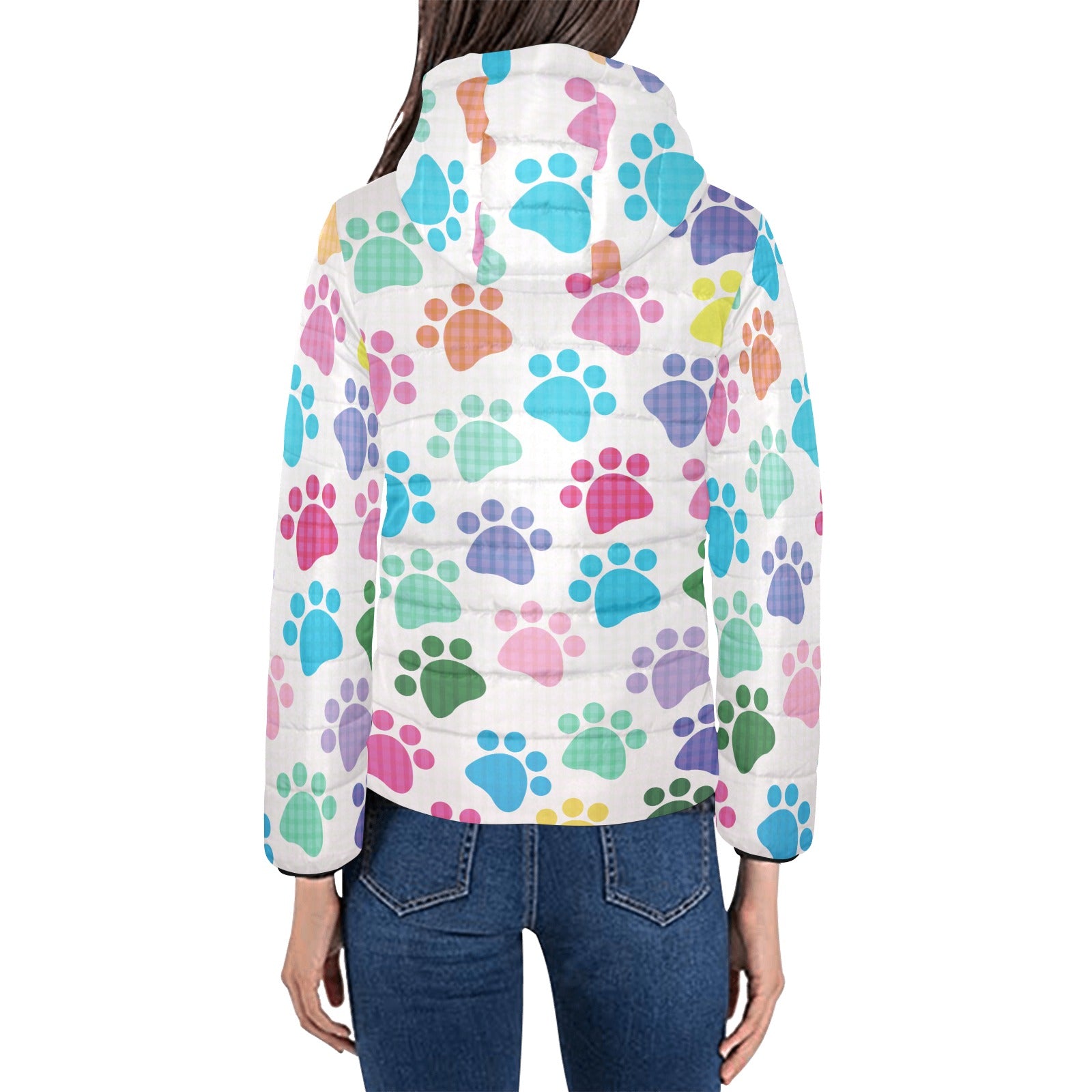 Dog Paws Pattern Print Design 01 Women's Padded Hooded Jacket