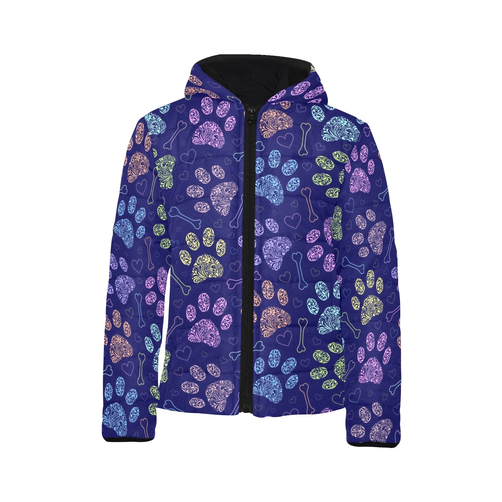Dog Paws Pattern Print Design 02 Kids' Boys' Girls' Padded Hooded Jacket