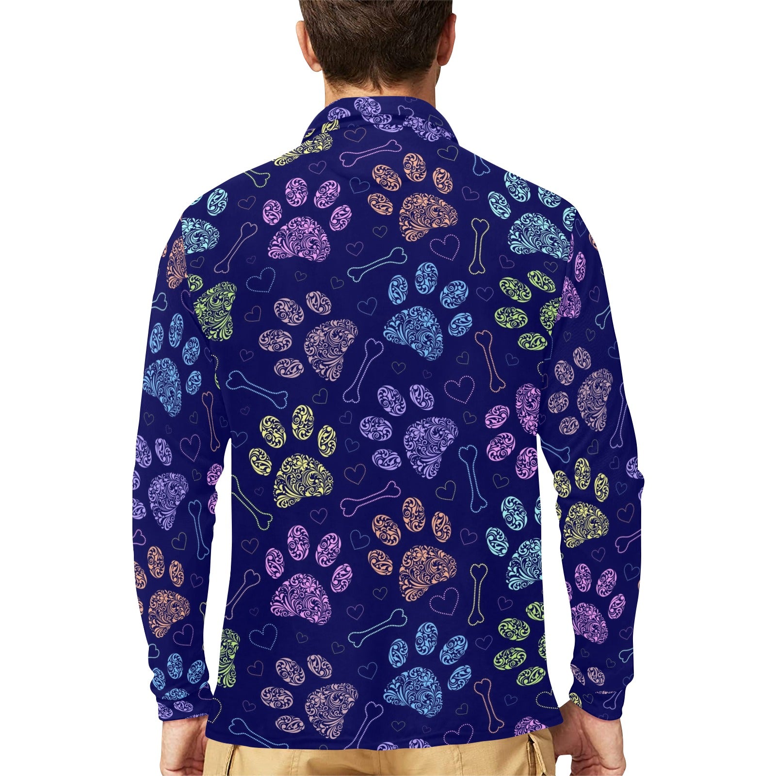 Dog Paws Pattern Print Design 02 Men's Long Sleeve Polo Shirt
