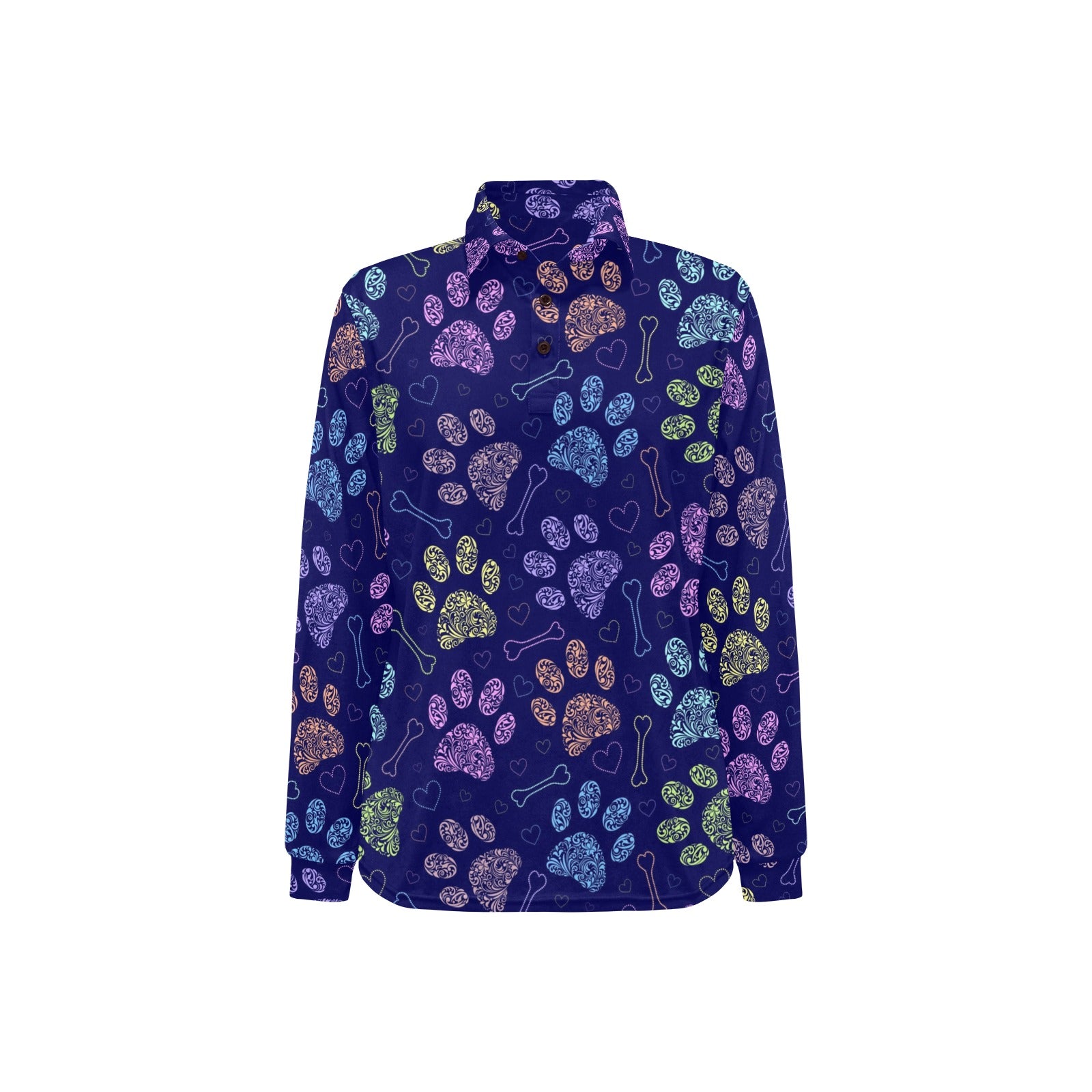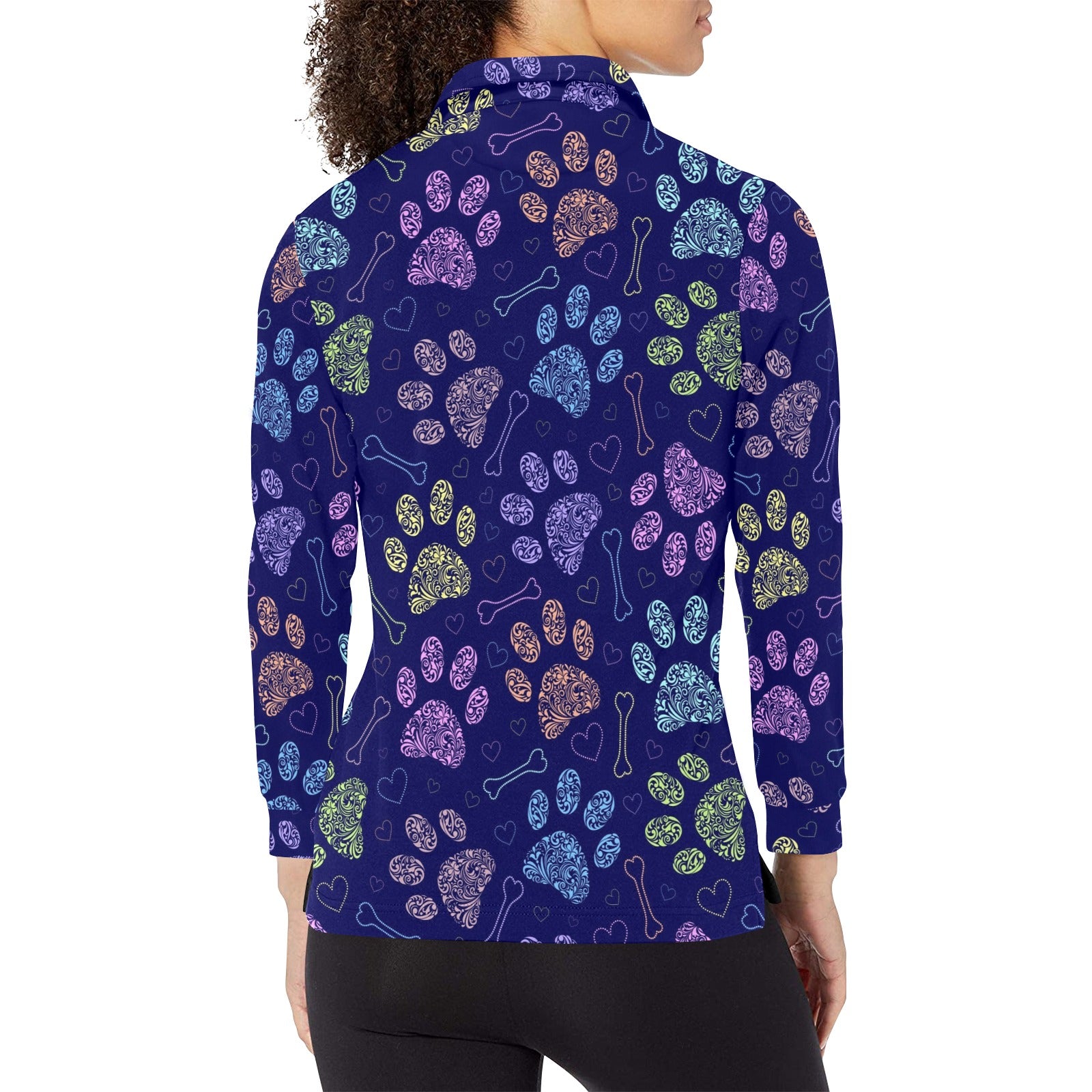 Dog Paws Pattern Print Design 02 Women's Long Sleeve Polo Shirt