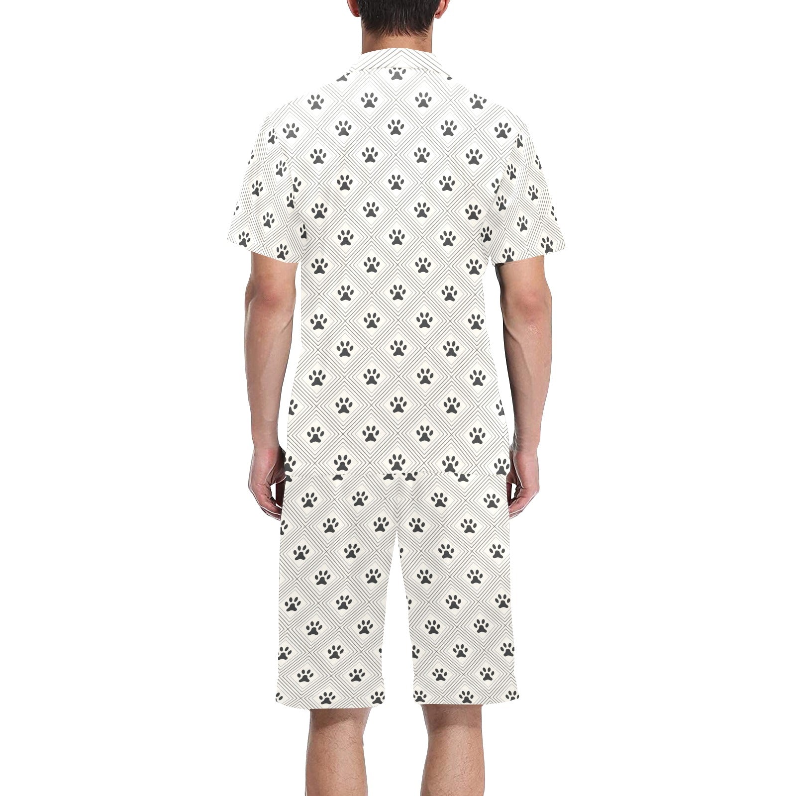 Dog Paws Pattern Print Design 03 Men's V-Neck Short Pajama Set