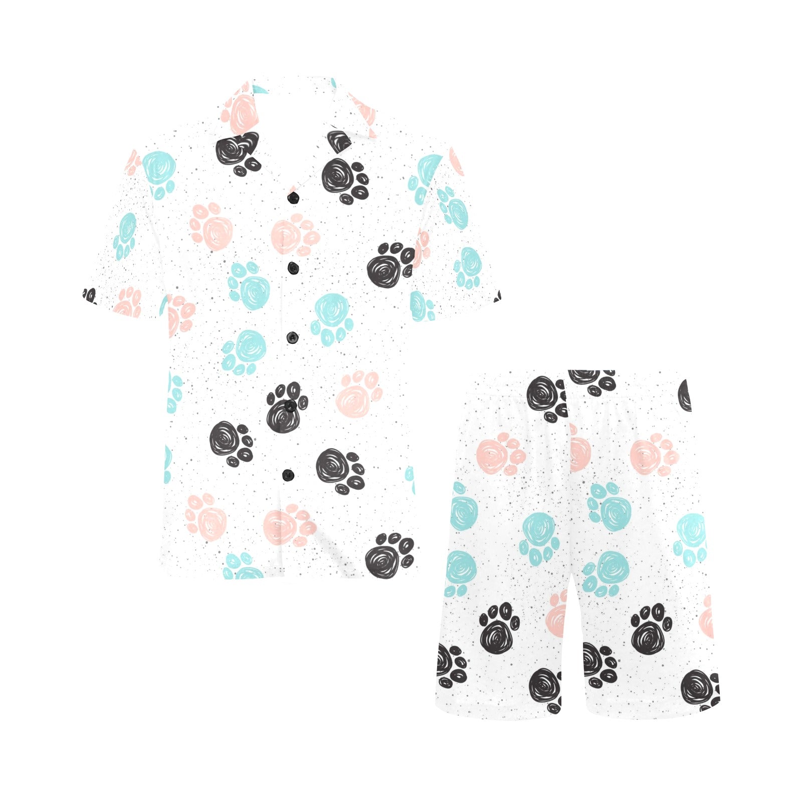 Dog Paws Pattern Print Design 04 Men's V-Neck Short Pajama Set