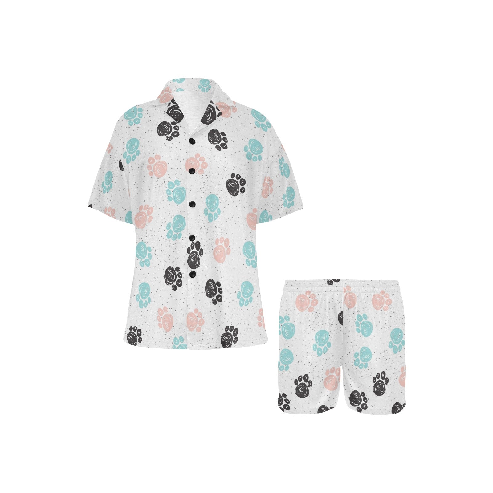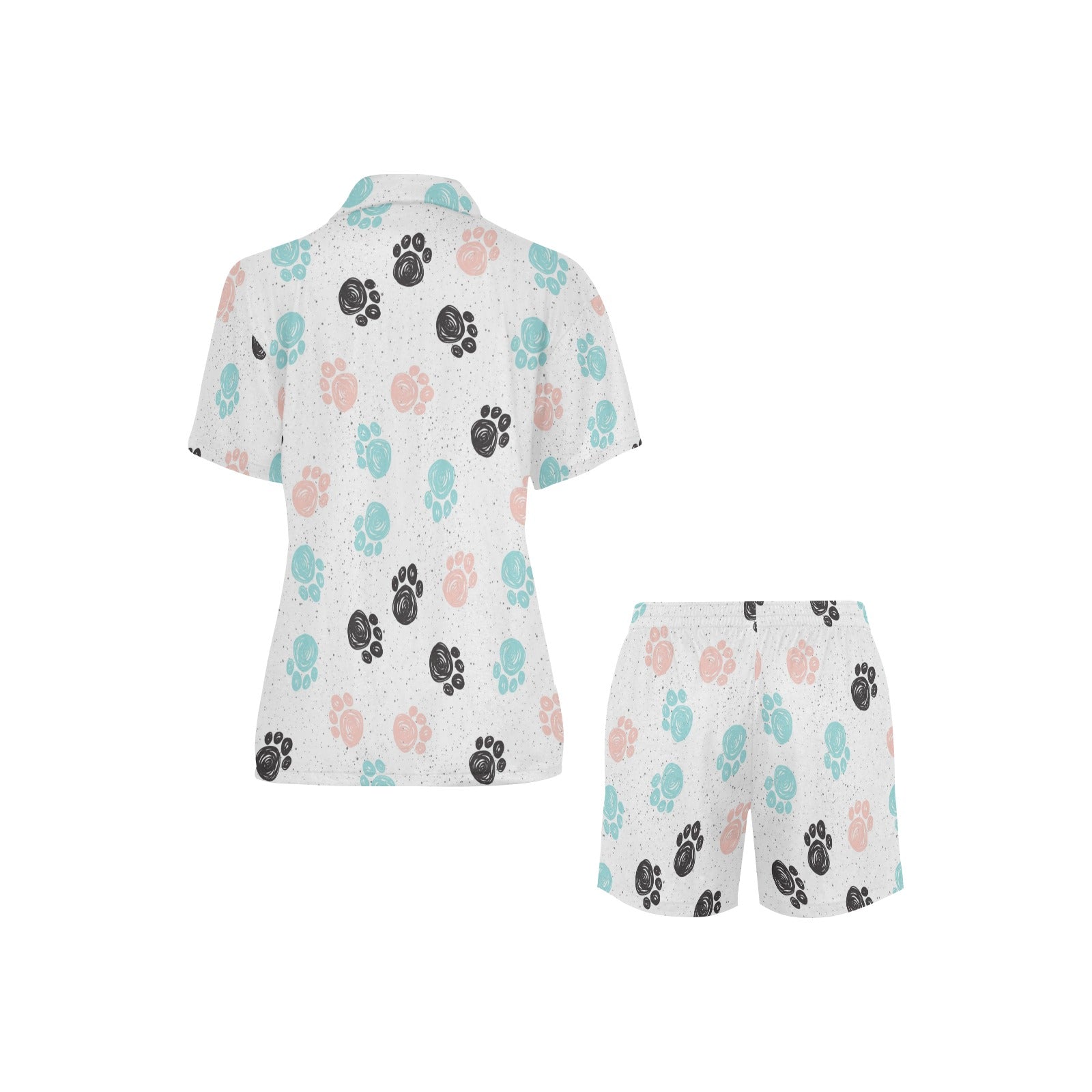 Dog Paws Pattern Print Design 04 Women's V-Neck Short Pajama Set