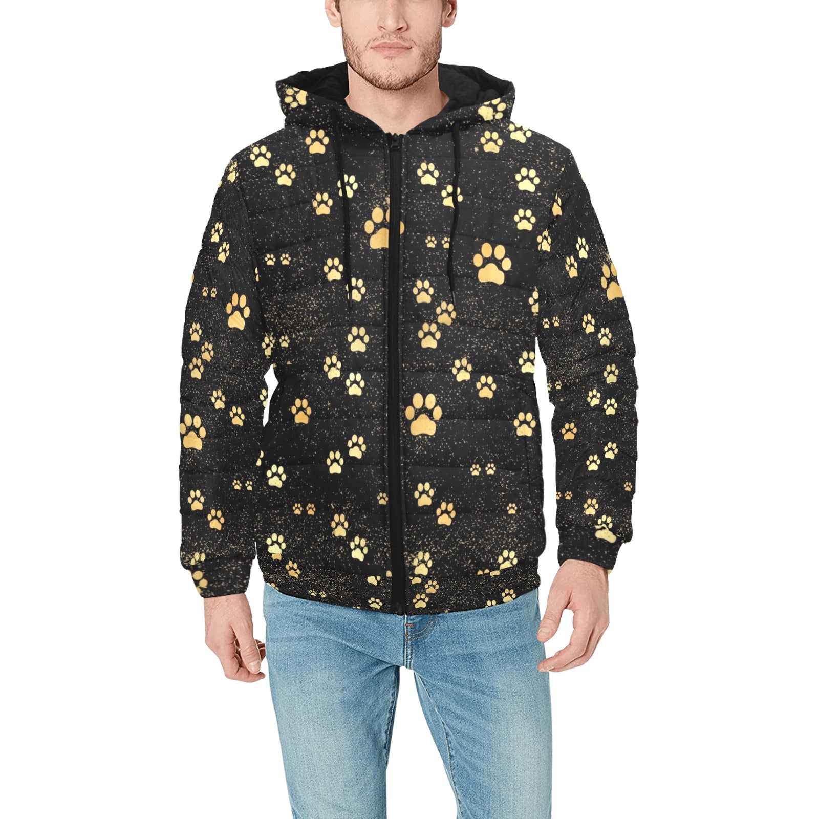 Dog Paws Pattern Print Design 05 Men's Padded Hooded Jacket