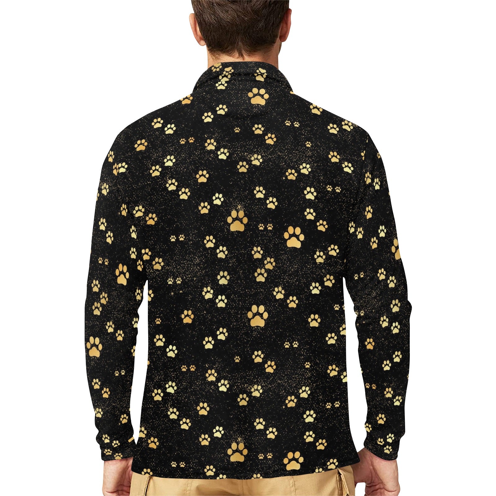 Dog Paws Pattern Print Design 05 Men's Long Sleeve Polo Shirt
