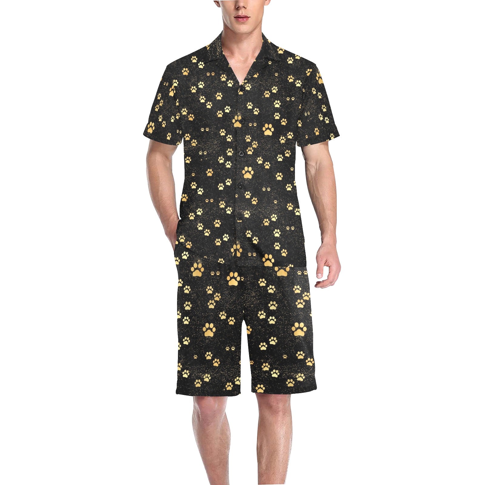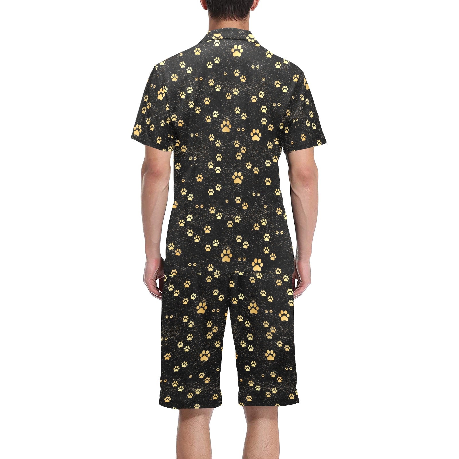 Dog Paws Pattern Print Design 05 Men's V-Neck Short Pajama Set