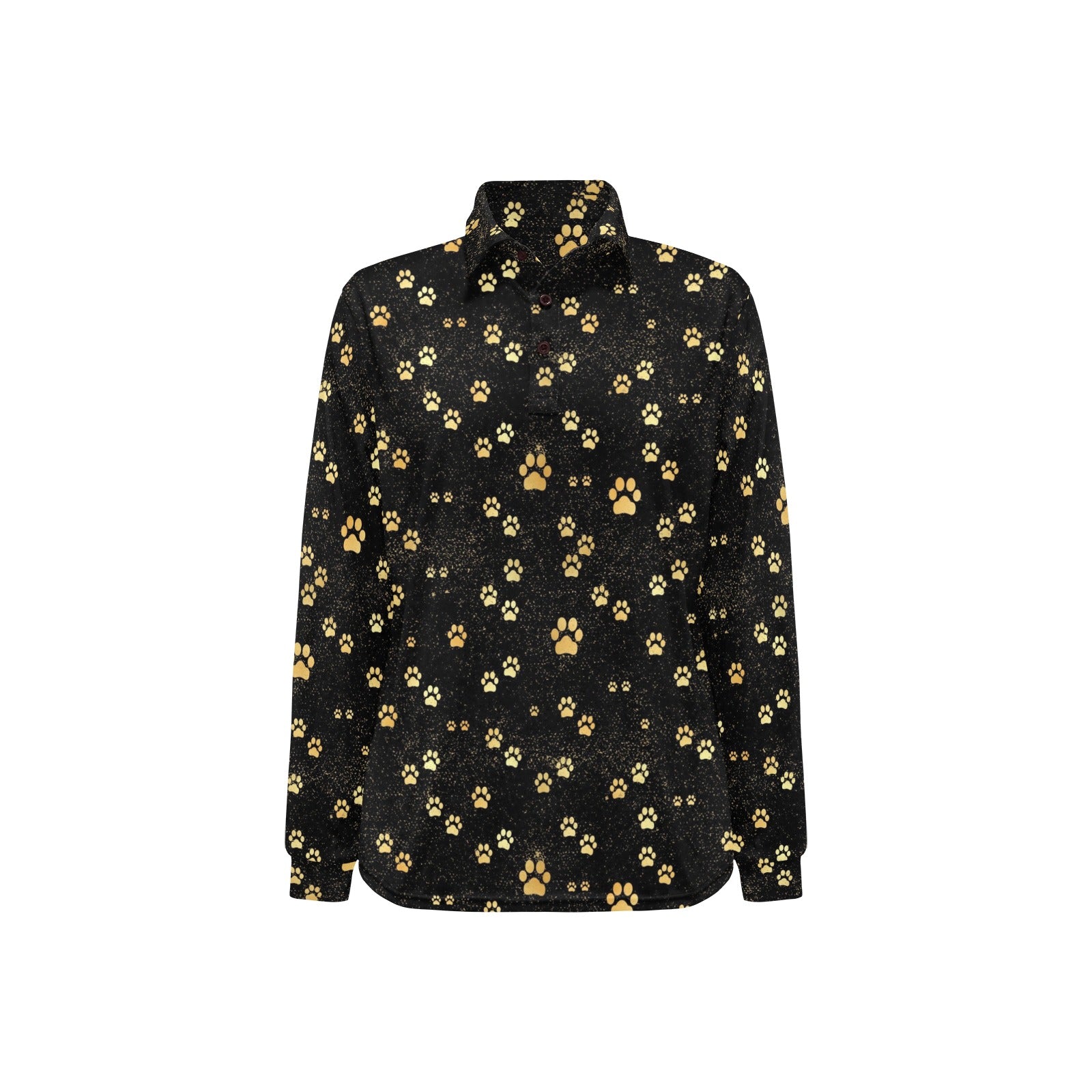 Dog Paws Pattern Print Design 05 Women's Long Sleeve Polo Shirt