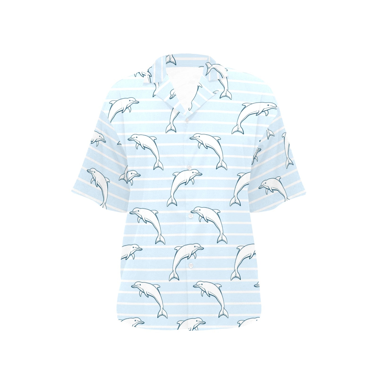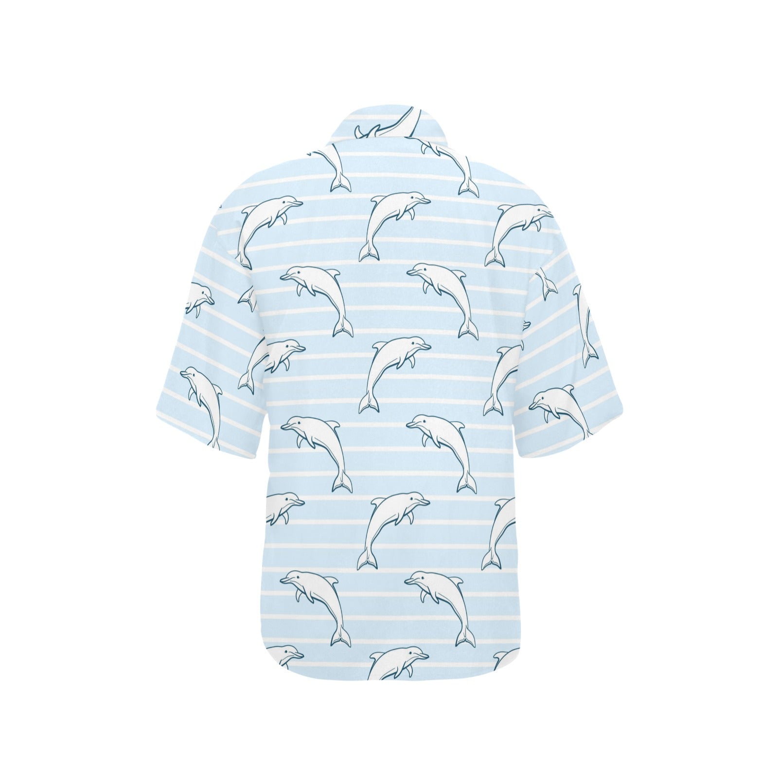 Dolphin blue striped background Women's All Over Print Hawaiian Shirt