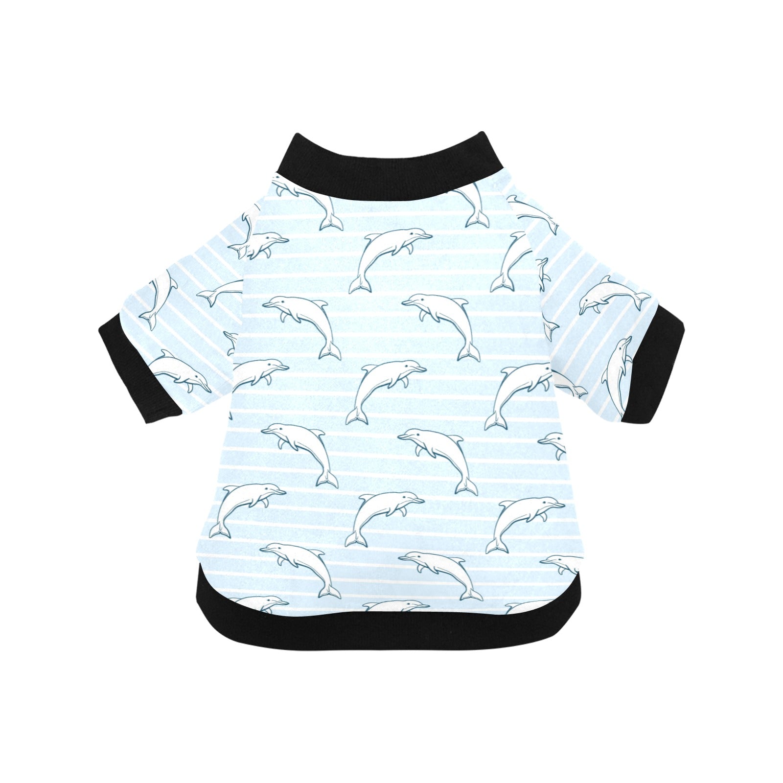 Dolphin blue striped background All Over Print Pet Dog Round Neck Fuzzy Shirt