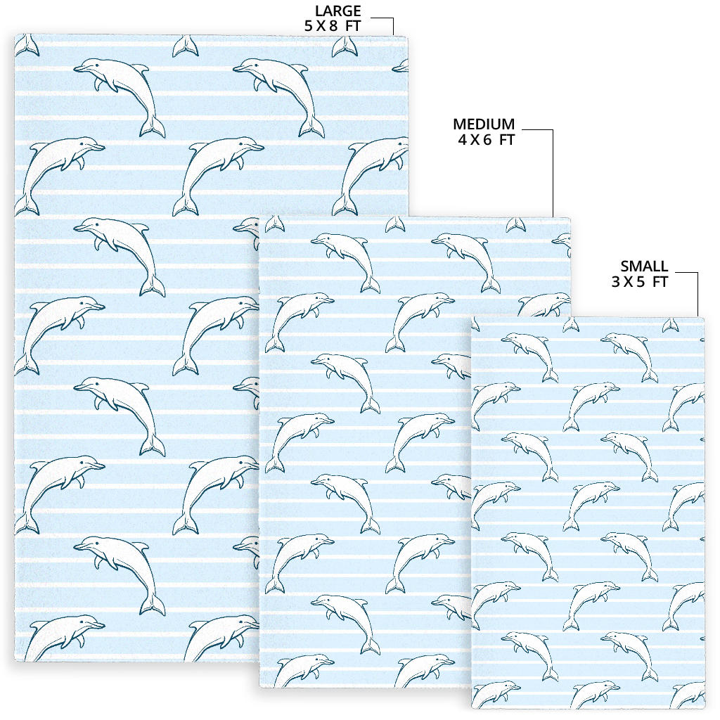 Dolphin blue striped background Area Rug is a uniqued design and limited item. It made to order, hand printed, and sewn with love in our factory.