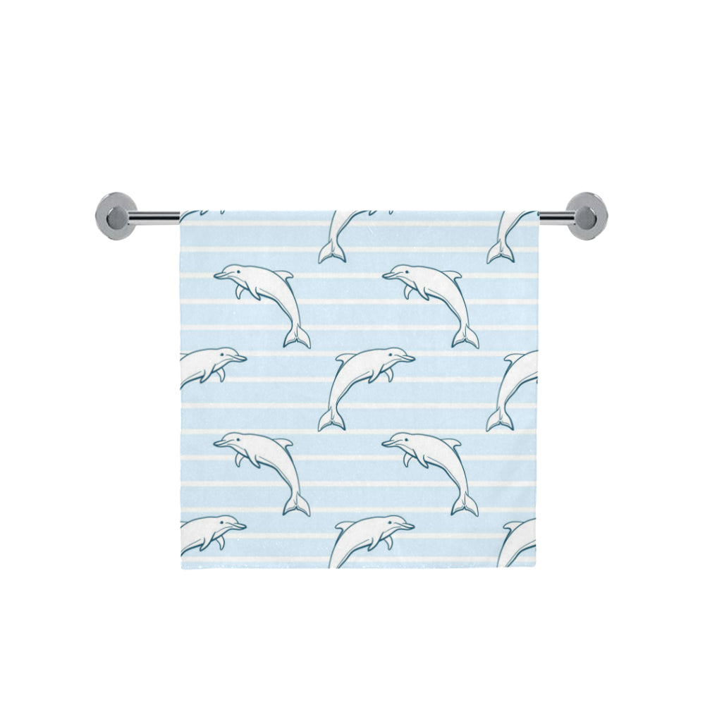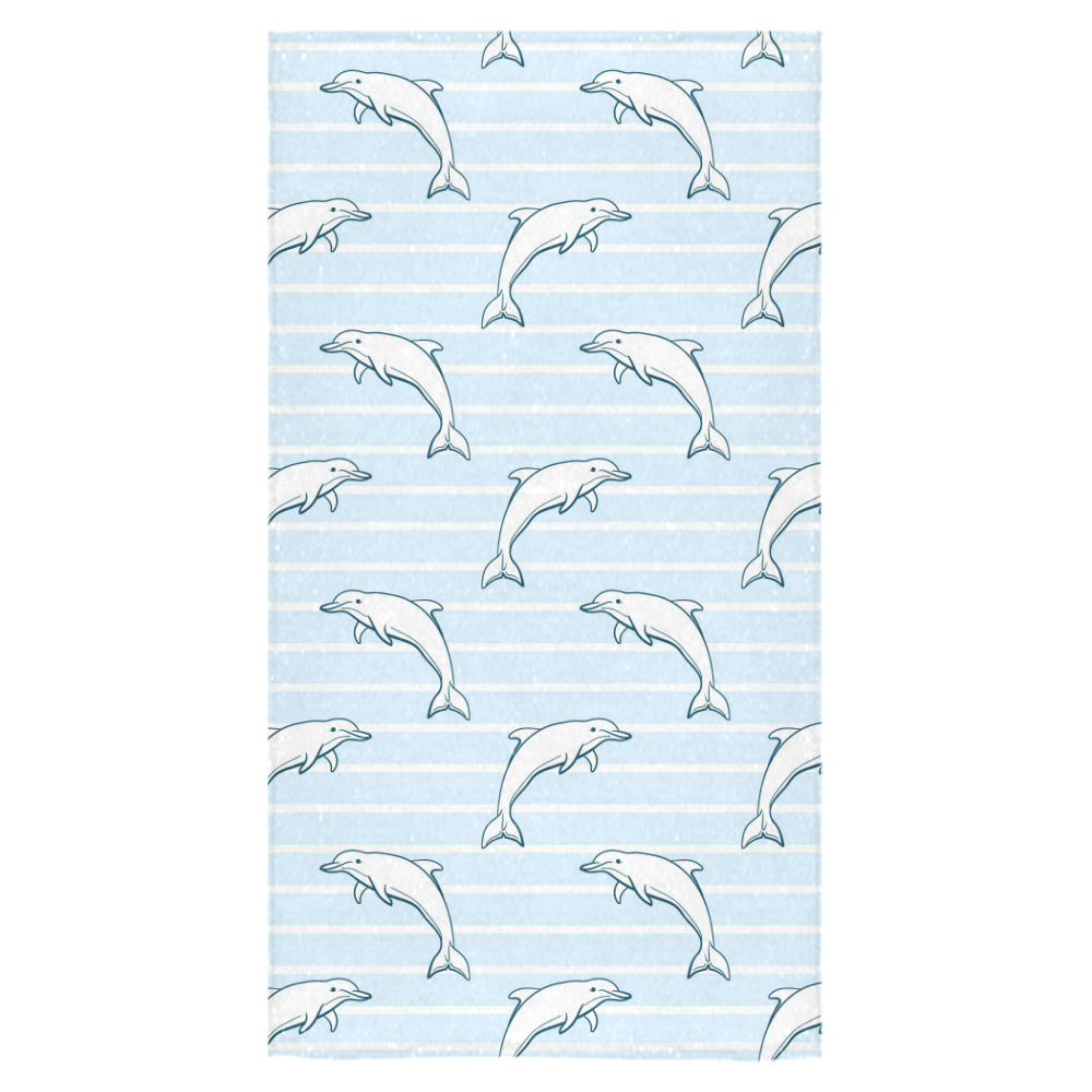 Dolphin blue striped background Bath Towel 30"x56" is a uniqued design and limited item. It made to order, hand printed, and sewn with love in our factory.