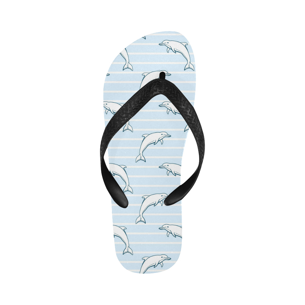 Dolphin blue striped background Unisex Flip Flops is a uniqued design and limited item. It made to order, hand printed, and sewn with love in our factory.