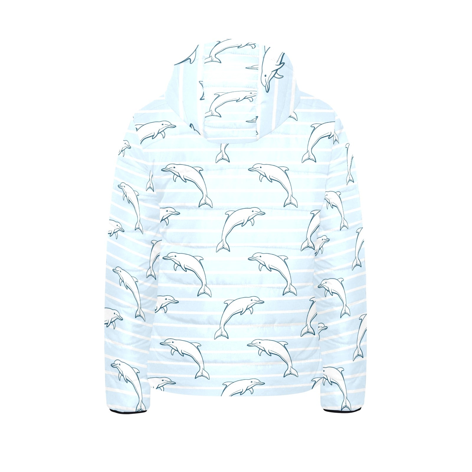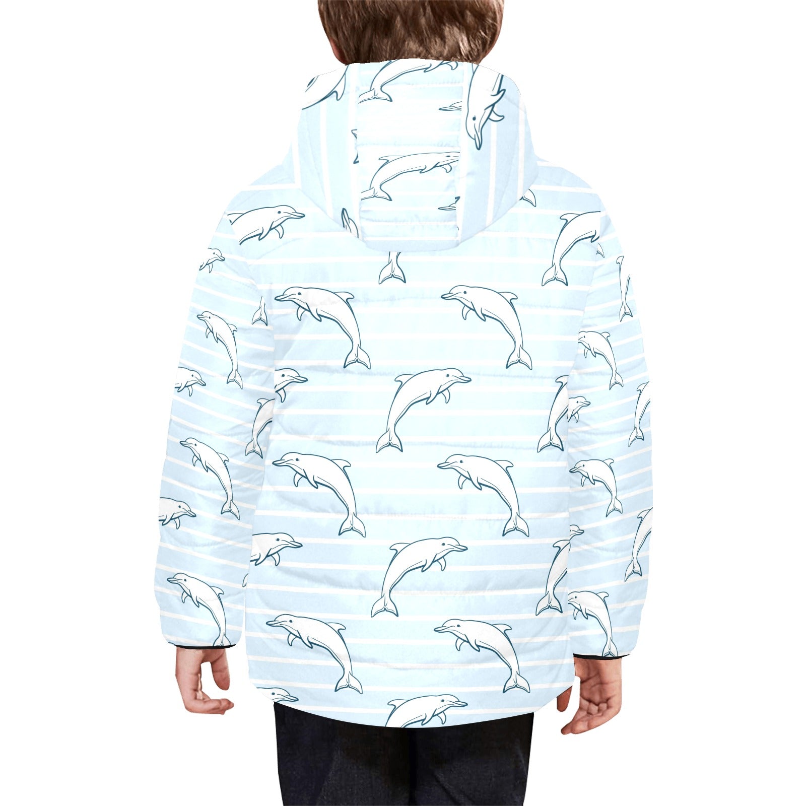 Dolphin blue striped background Kids' Boys' Girls' Padded Hooded Jacket