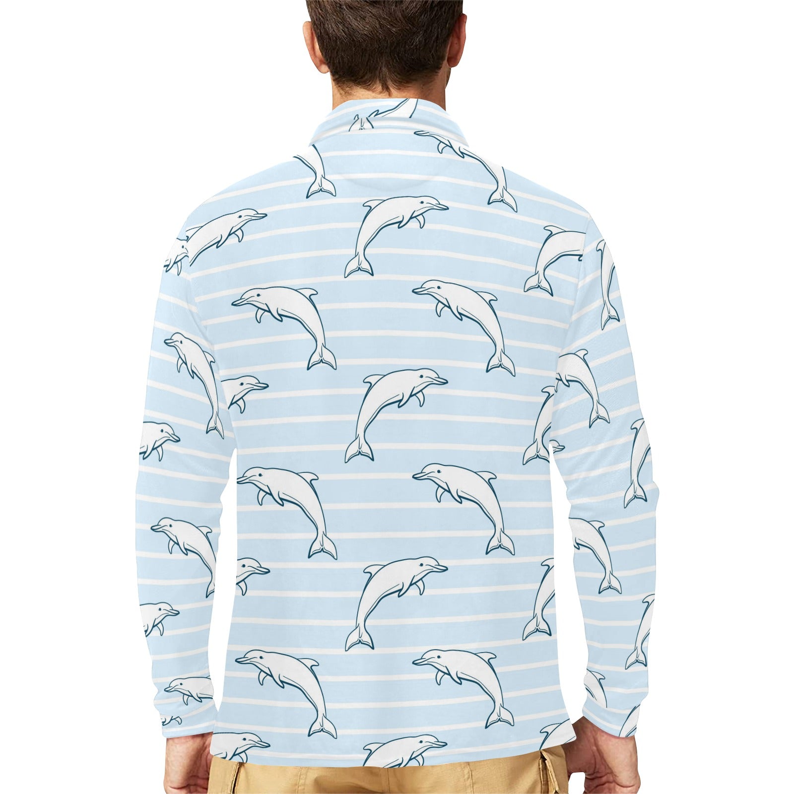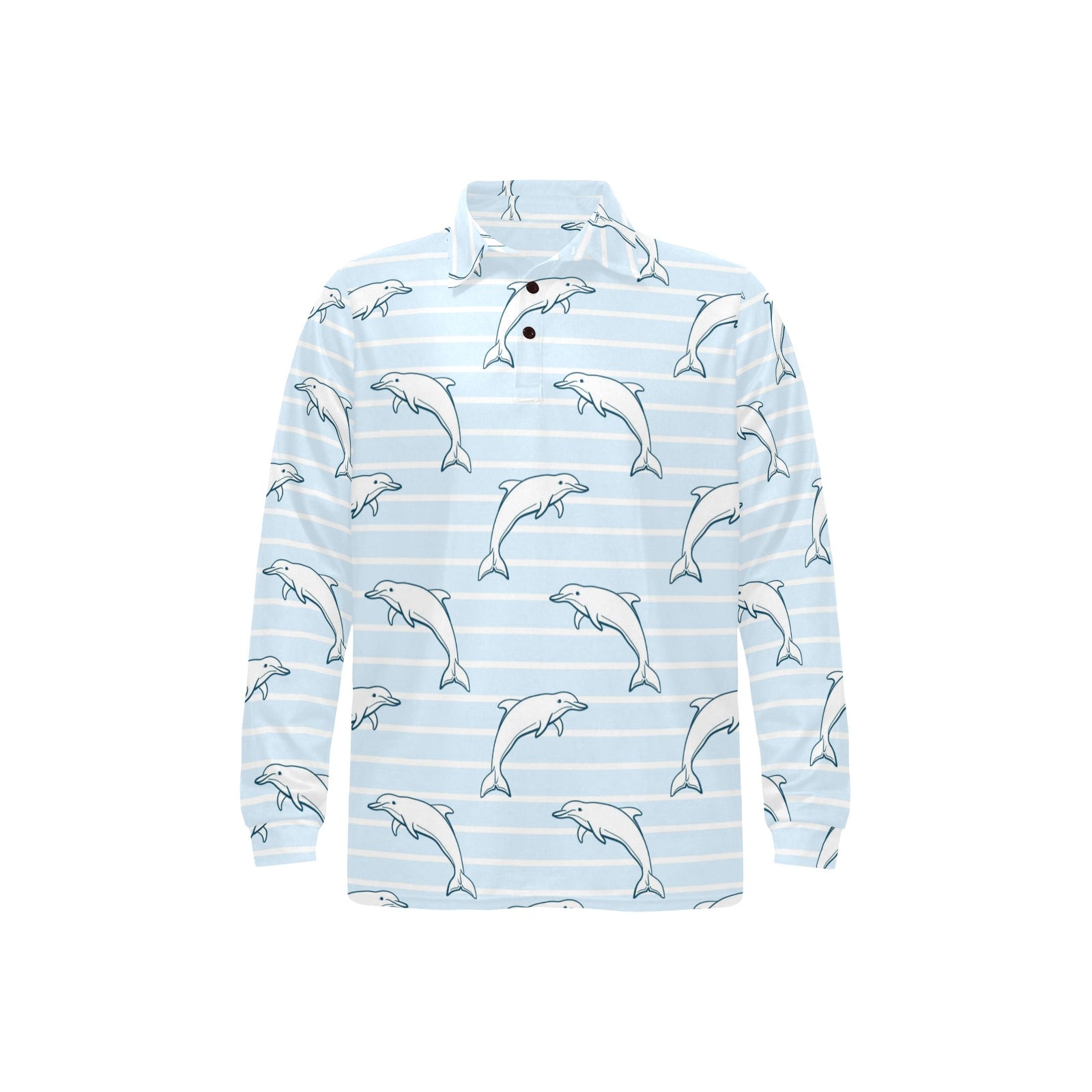 Dolphin blue striped background Men's Long Sleeve Polo Shirt