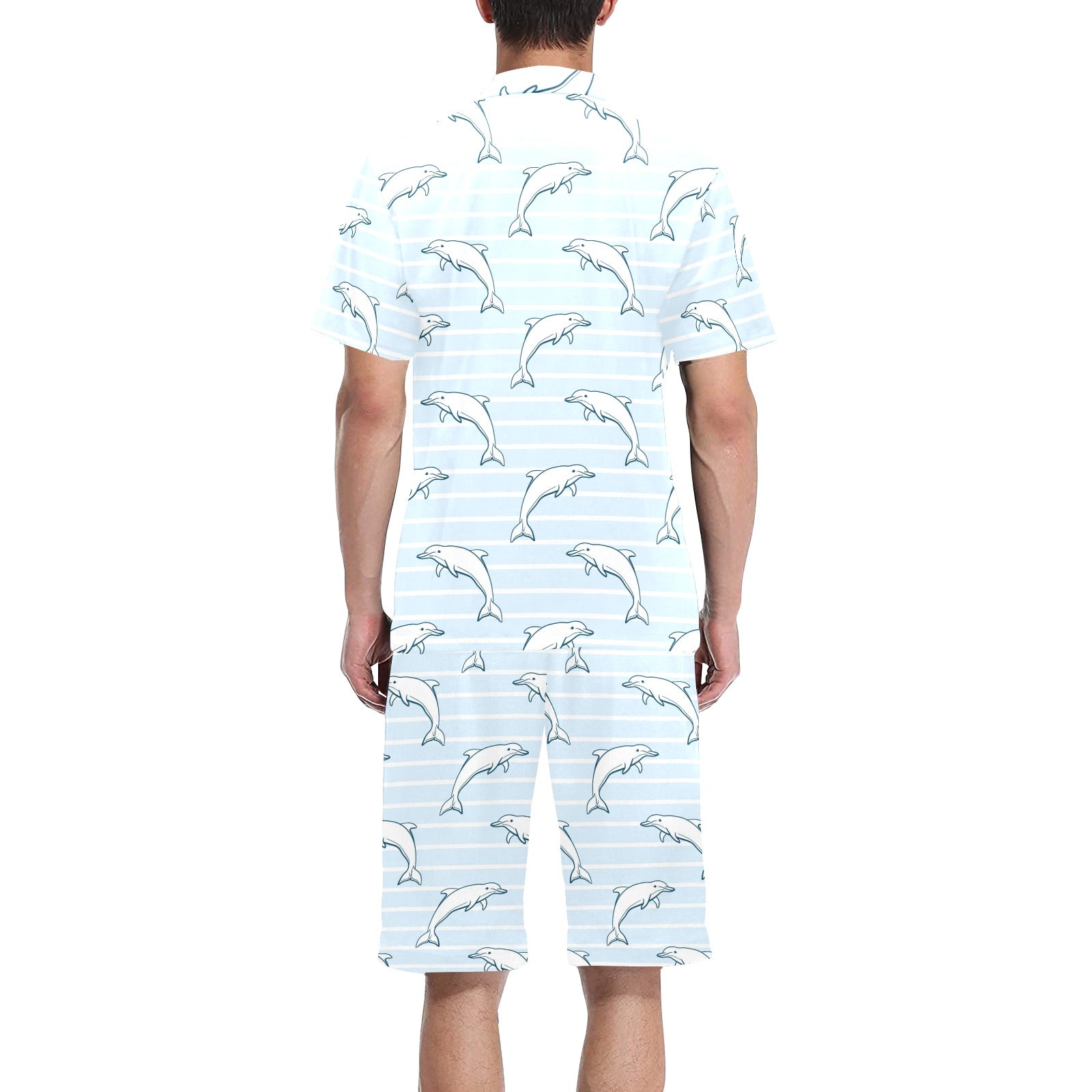 Dolphin blue striped background Men's V-Neck Short Pajama Set