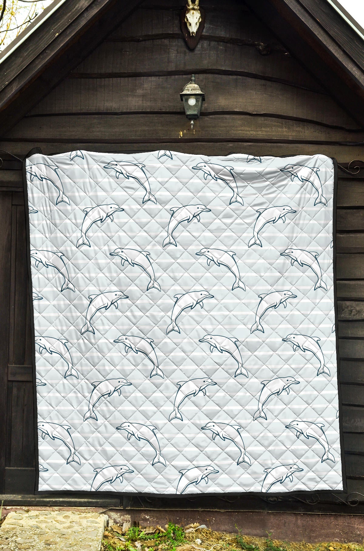Dolphin Blue Striped Background Premium Quilt is a uniqued design and limited item. It made to order, hand printed, and sewn with love in our factory.