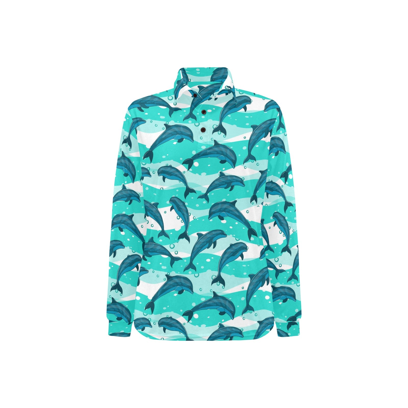 Dolphin sea pattern Women's Long Sleeve Polo Shirt