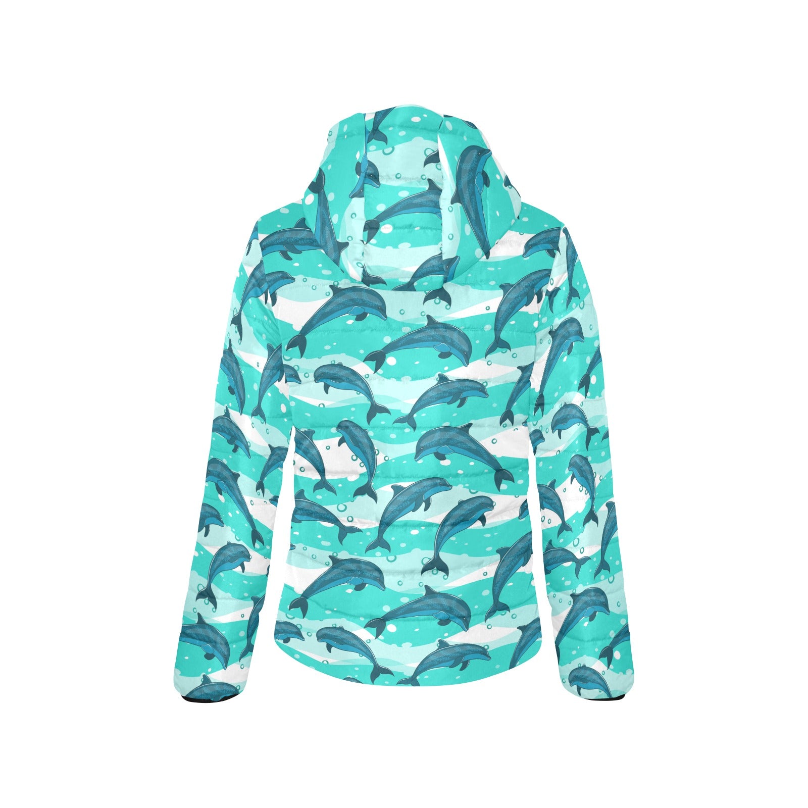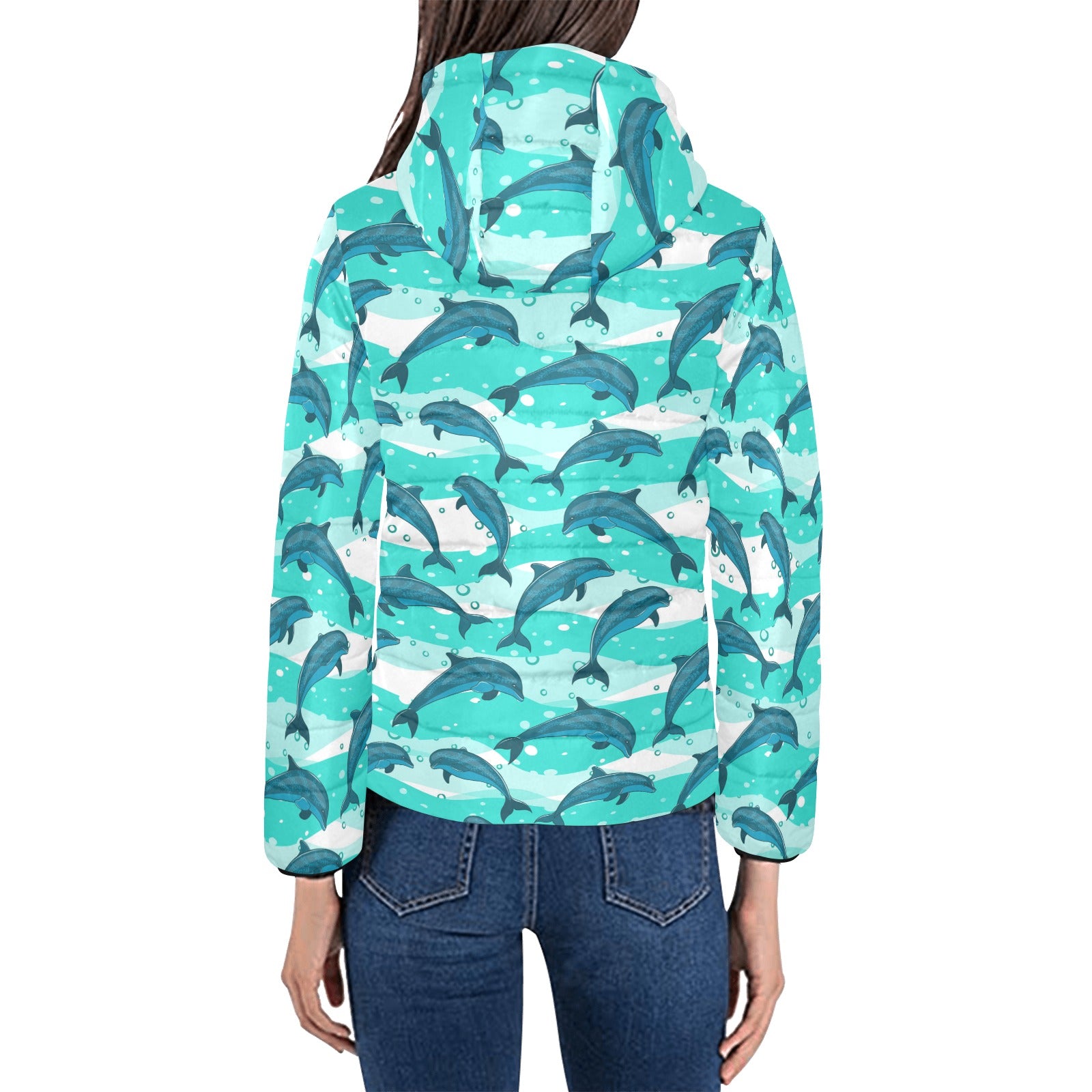 Dolphin sea pattern Women's Padded Hooded Jacket
