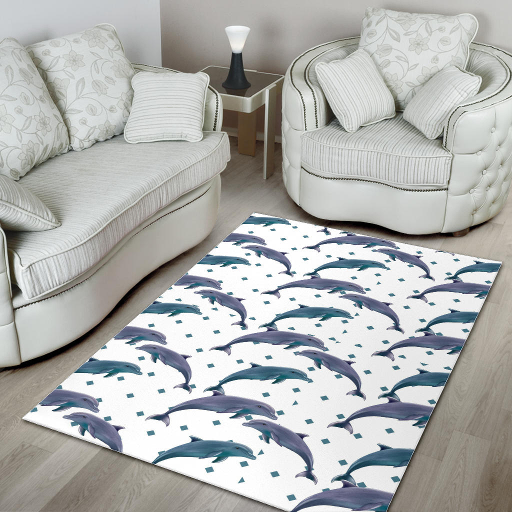 Dolphins pattern dotted background Area Rug is a uniqued design and limited item. It made to order, hand printed, and sewn with love in our factory.