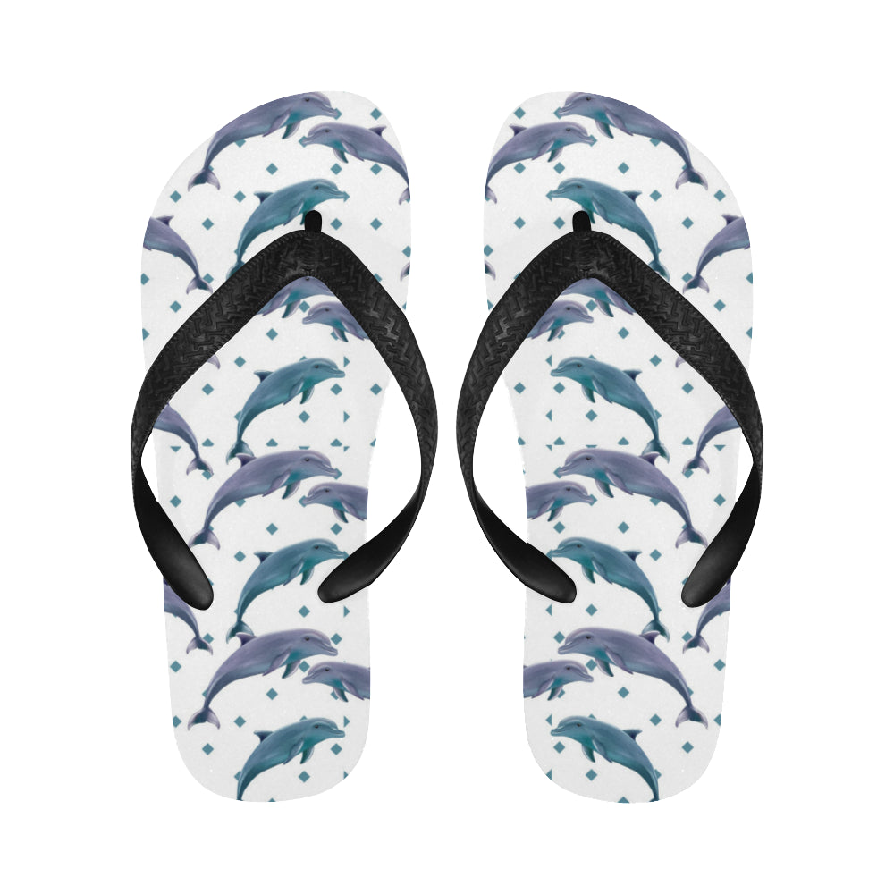 Dolphins pattern dotted background Unisex Flip Flops is a uniqued design and limited item. It made to order, hand printed, and sewn with love in our factory.