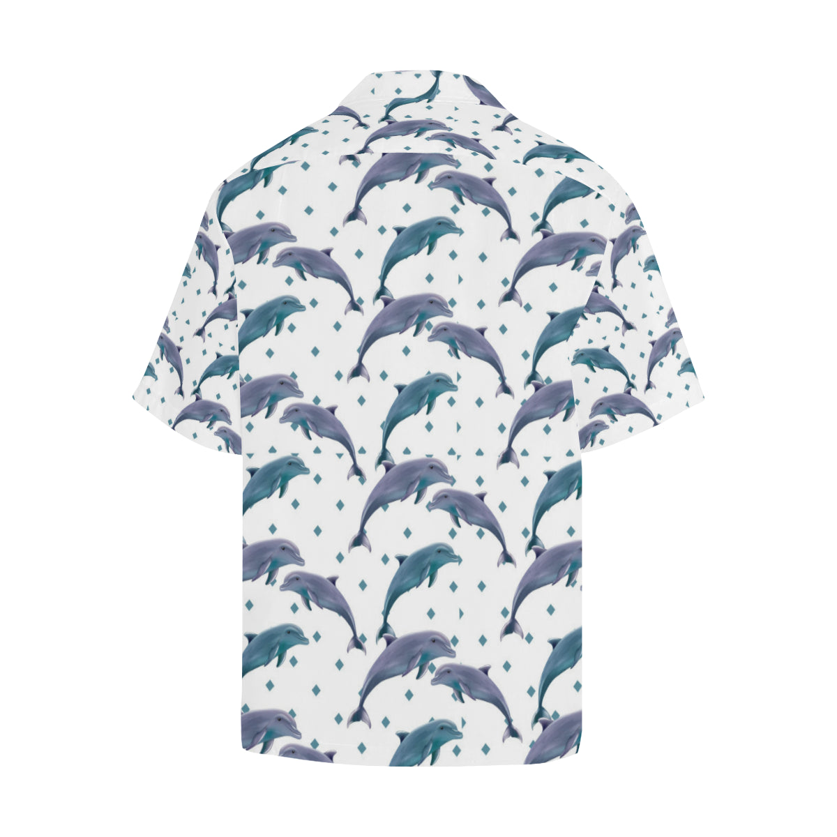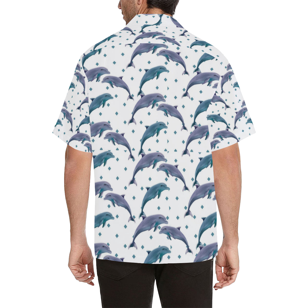 Dolphins pattern dotted background Men's All Over Print Hawaiian Shirt is a uniqued design and limited item. It made to order, hand printed, and sewn with love in our factory.