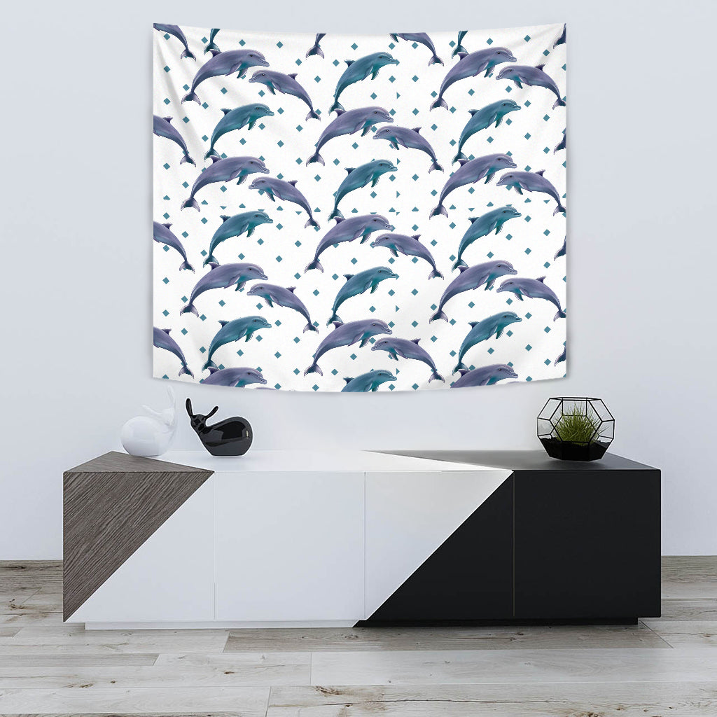 Dolphins pattern dotted background Tapestry is a uniqued design and limited item. It made to order, hand printed, and sewn with love in our factory.
