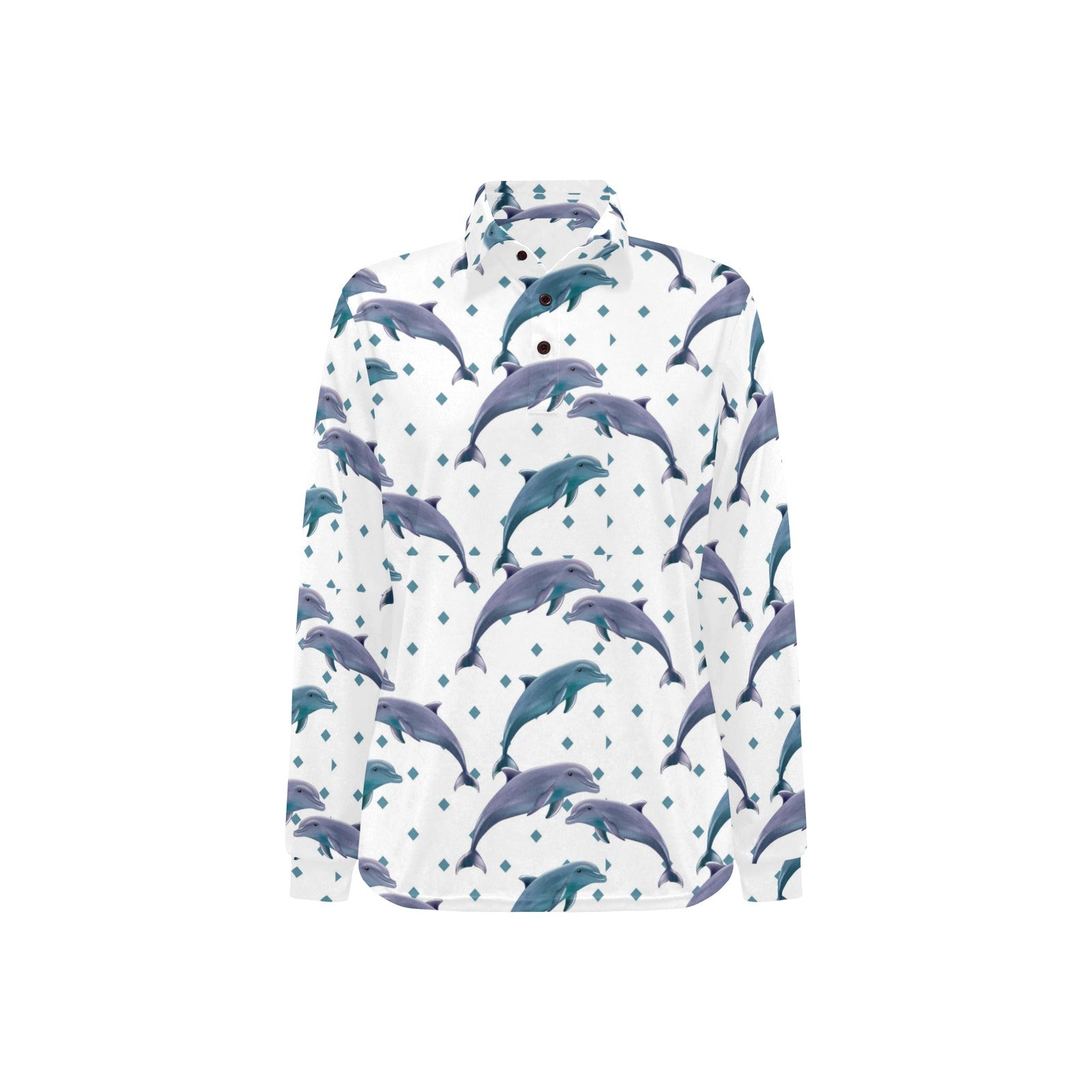 Dolphins pattern dotted background Women's Long Sleeve Polo Shirt