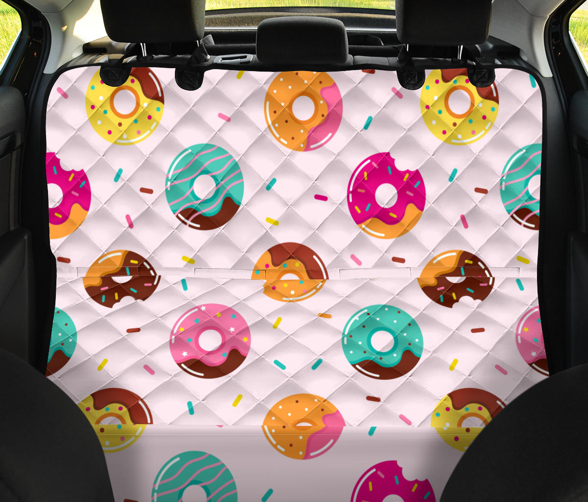 Donut pattern glaze pink background Dog Car Seat Covers is a uniqued design and limited item. It made to order, hand printed, and sewn with love in our factory.