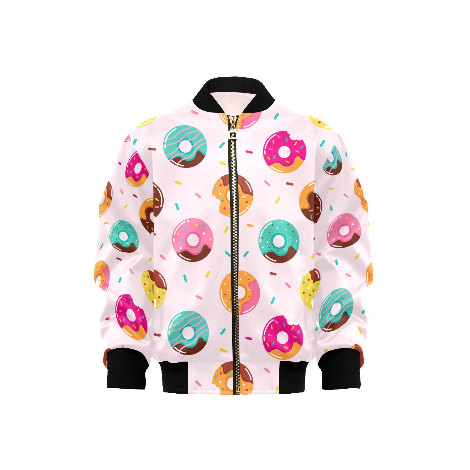 Donut pattern glaze pink background Kids' Boys' Girls' Bomber Jacket