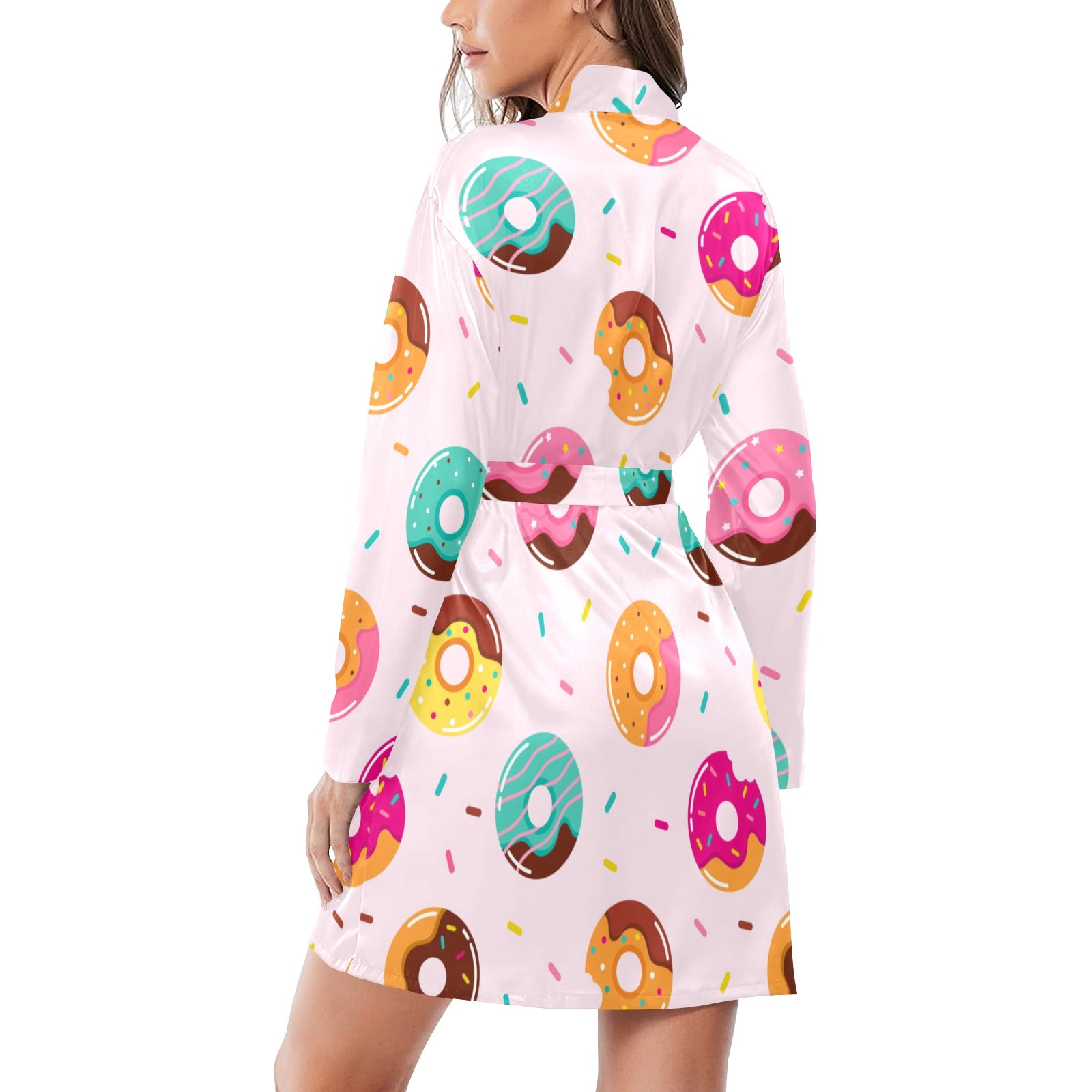Donut pattern glaze pink background Women's Long Sleeve Belted Night Robe