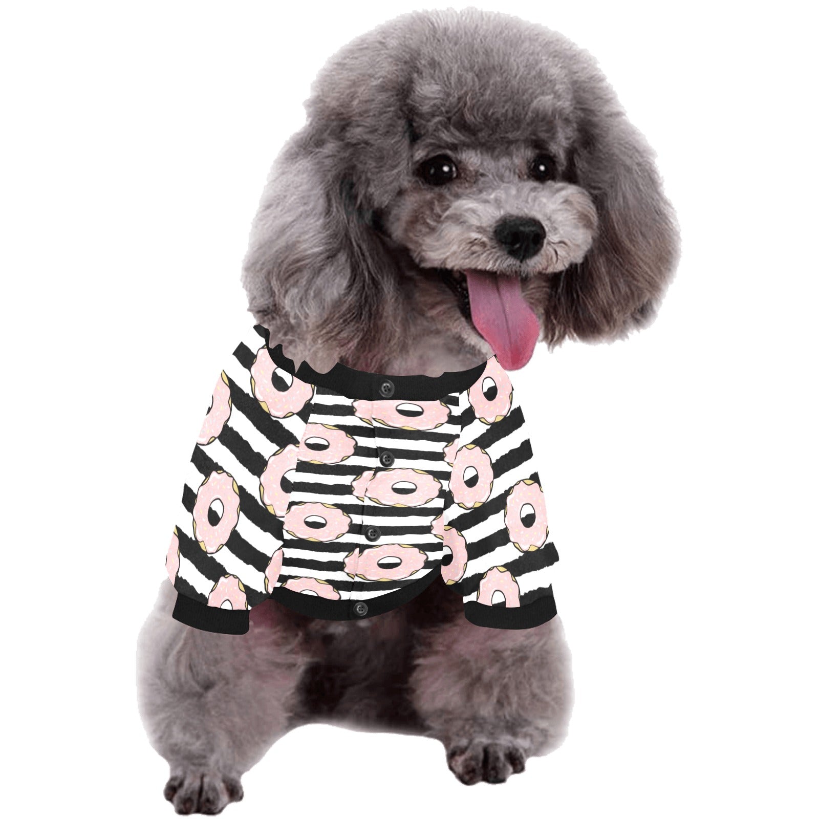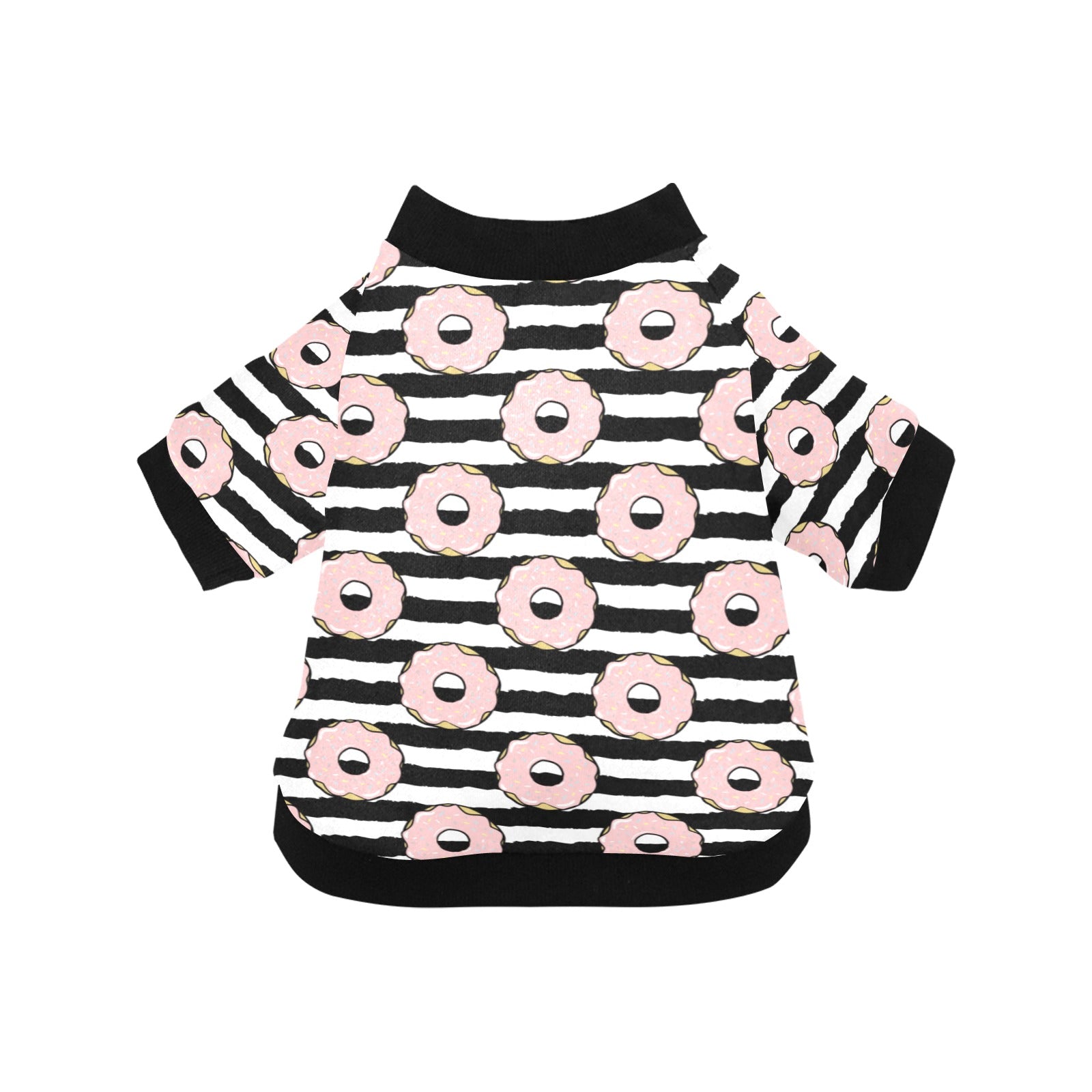 Donuts pink icing striped pattern All Over Print Pet Dog Round Neck Fuzzy Shirt
