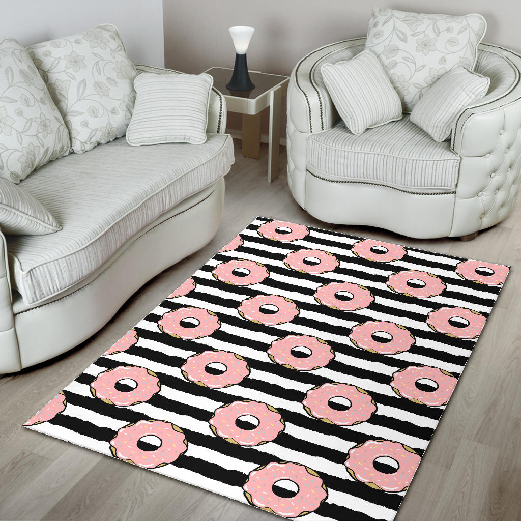 Donuts pink icing striped pattern Area Rug is a uniqued design and limited item. It made to order, hand printed, and sewn with love in our factory.