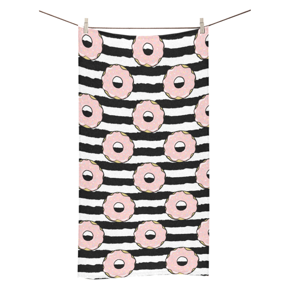 Donuts pink icing striped pattern Bath Towel 30"x56" is a uniqued design and limited item. It made to order, hand printed, and sewn with love in our factory.