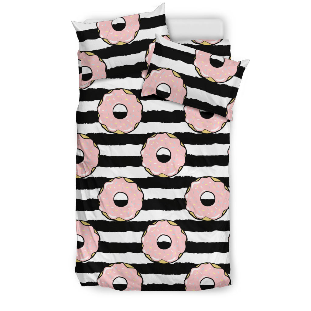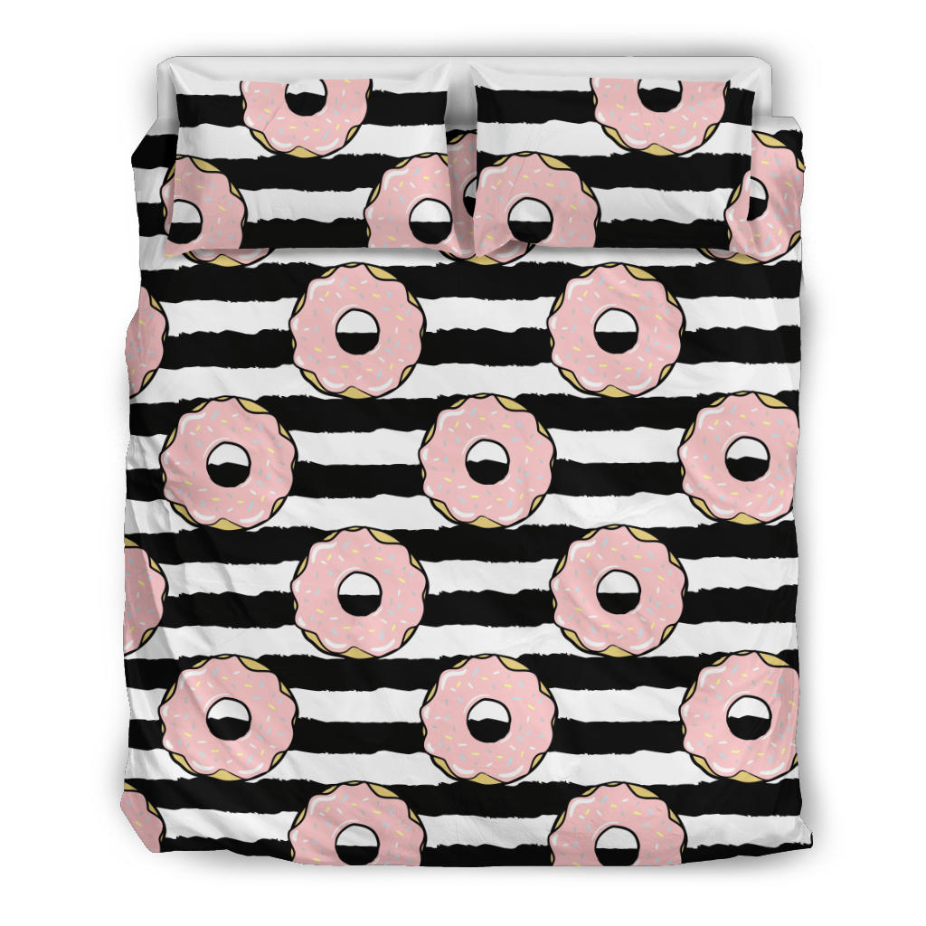 Donuts pink icing striped pattern Bedding Set is a uniqued design and limited item. It made to order, hand printed, and sewn with love in our factory.