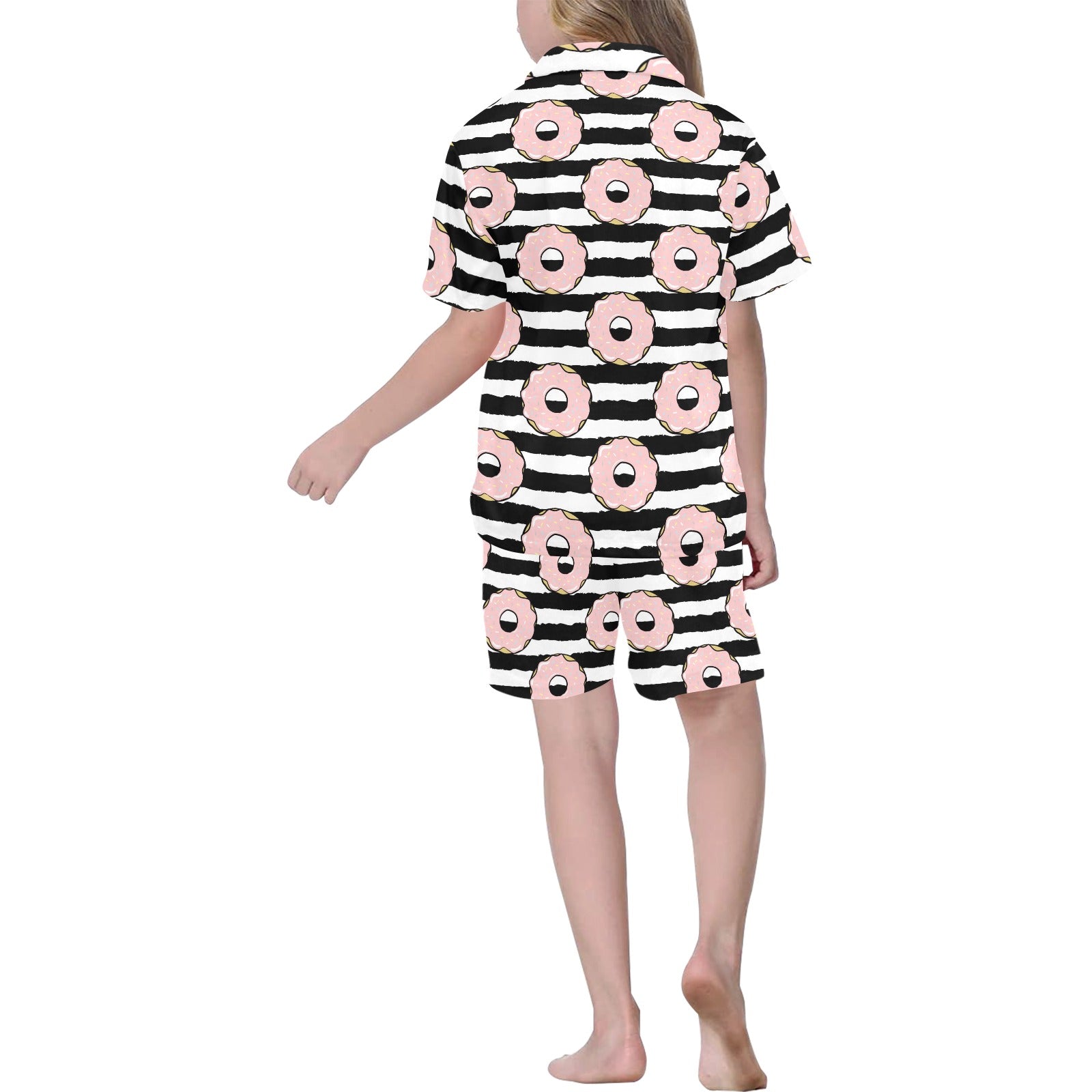 Donuts pink icing striped pattern Kids' Boys' Girls' V-Neck Short Pajama Set