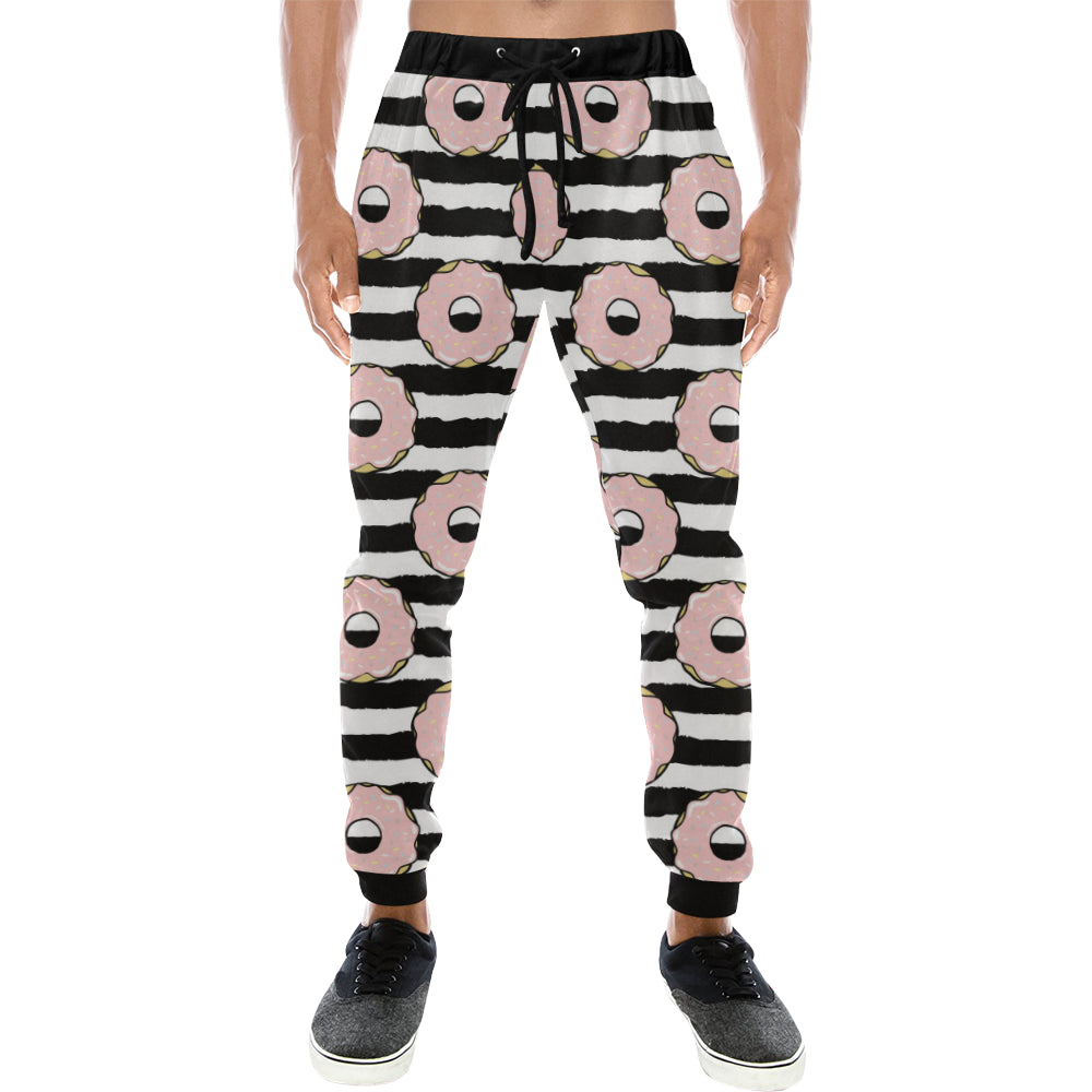 Donuts pink icing striped pattern Unisex Casual Sweatpants