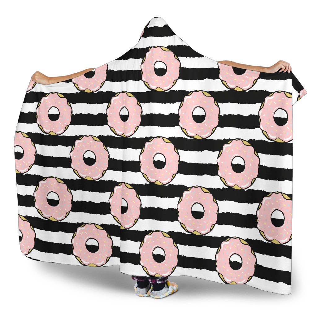 Donuts pink icing striped pattern Hooded Blanket are custom-made-to-order and handcrafted to the highest quality standards.