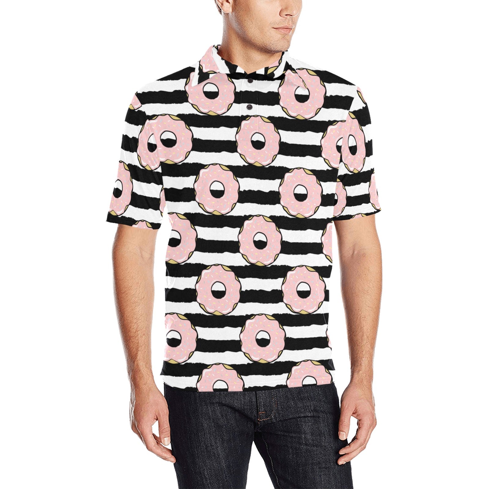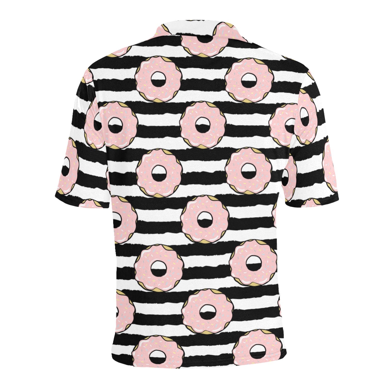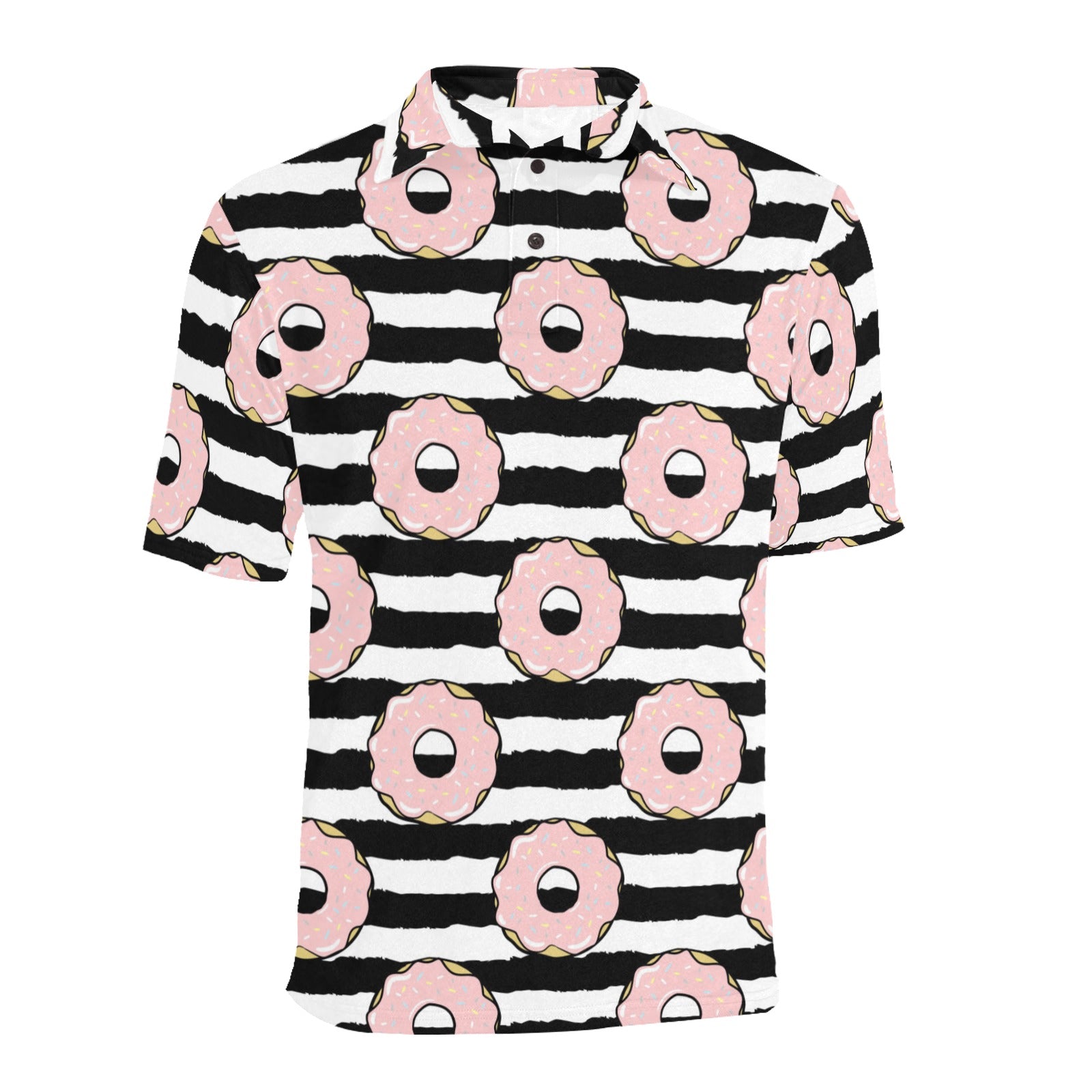 Donuts pink icing striped pattern Men's All Over Print Polo Shirt