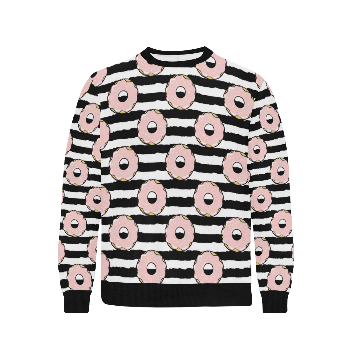 Donuts pink icing striped pattern Men's Crew Neck Sweatshirt