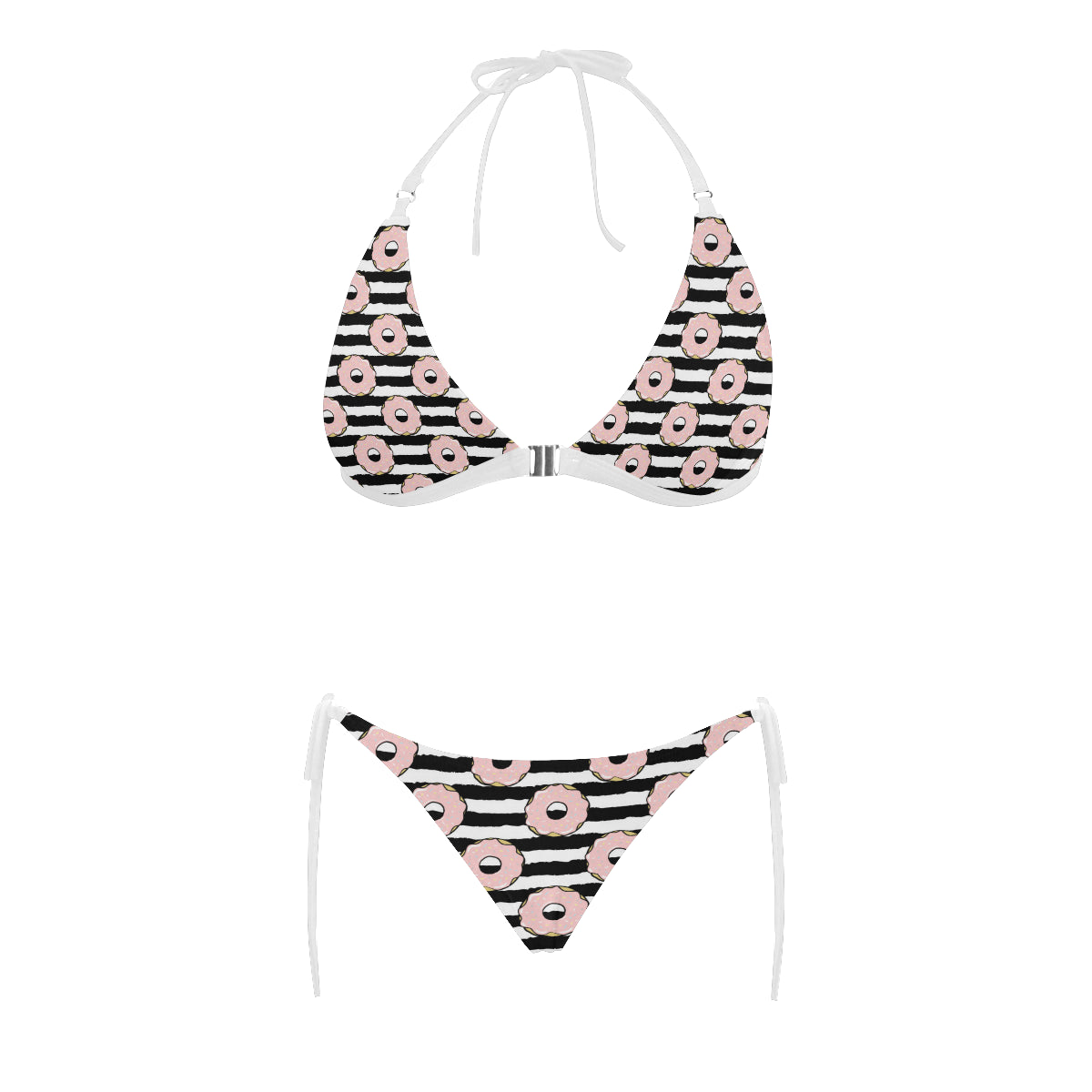 Donuts pink icing striped pattern Sexy Bikinis Two-Piece Swimsuits are uniqued design and limited item. It made to order, hand printed, and sewn with love in our factory.