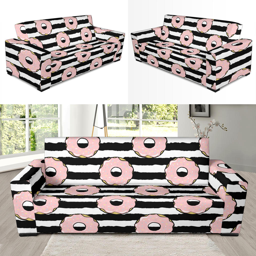 Donuts Pink Icing Striped Pattern Sofa Slipcover