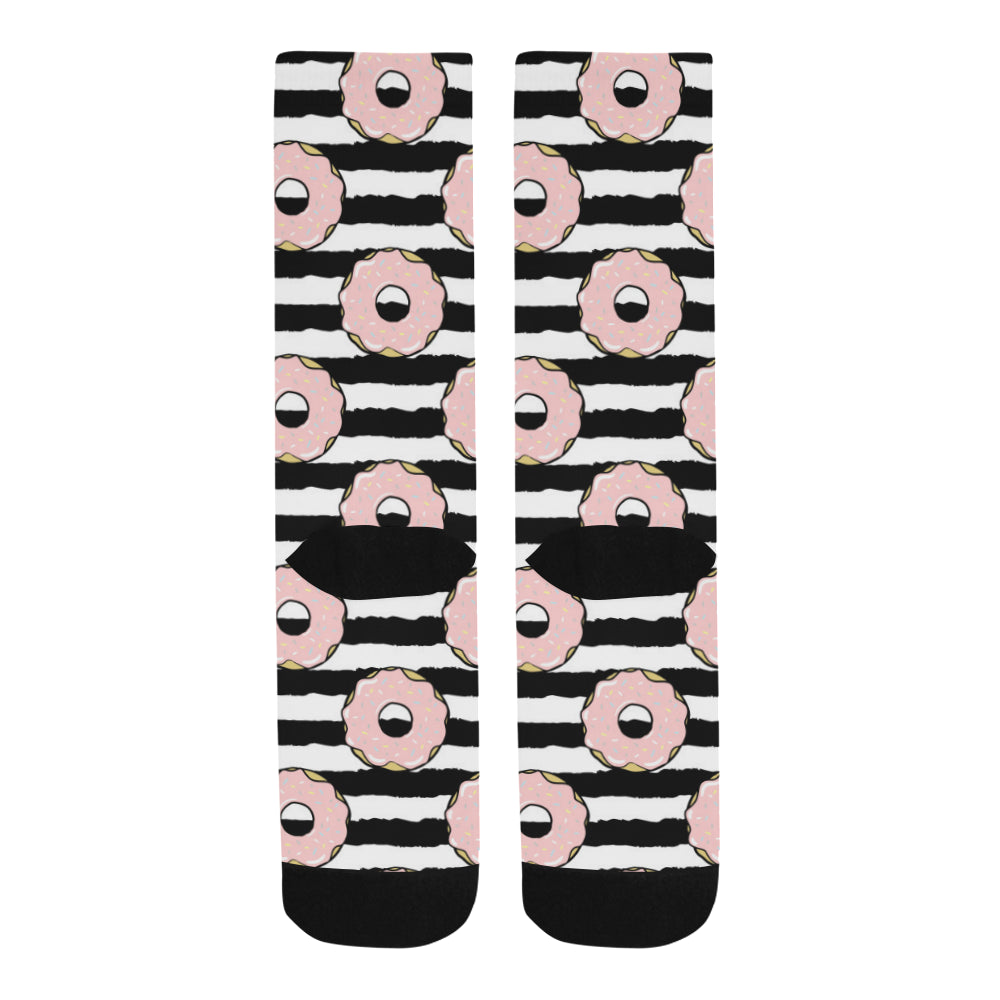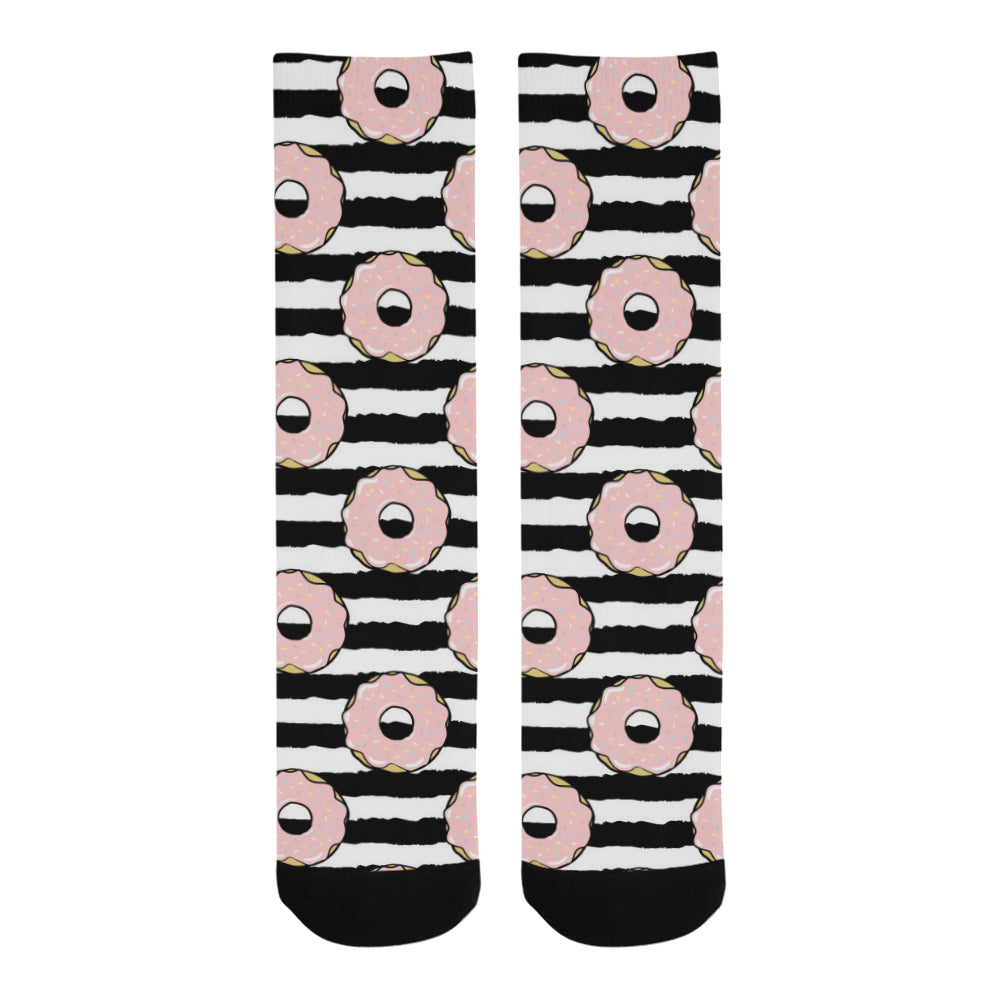 Donuts pink icing striped pattern Crew Socks are uniqued design and limited item. It made to order, hand printed, and sewn with love in our factory.