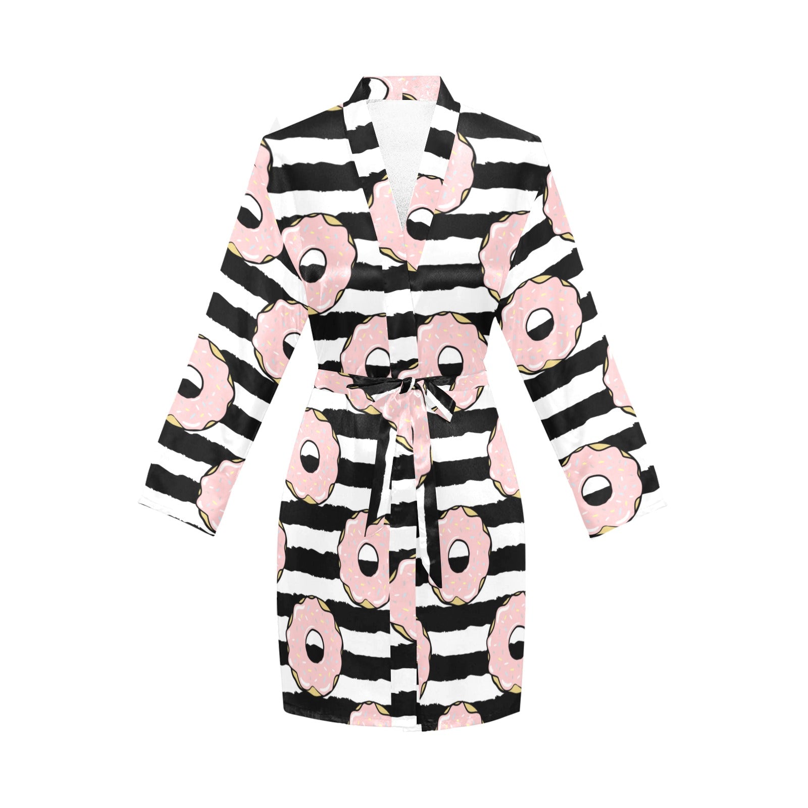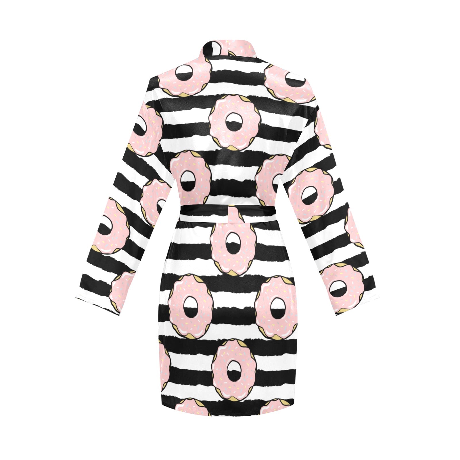 Donuts pink icing striped pattern Women's Long Sleeve Belted Night Robe